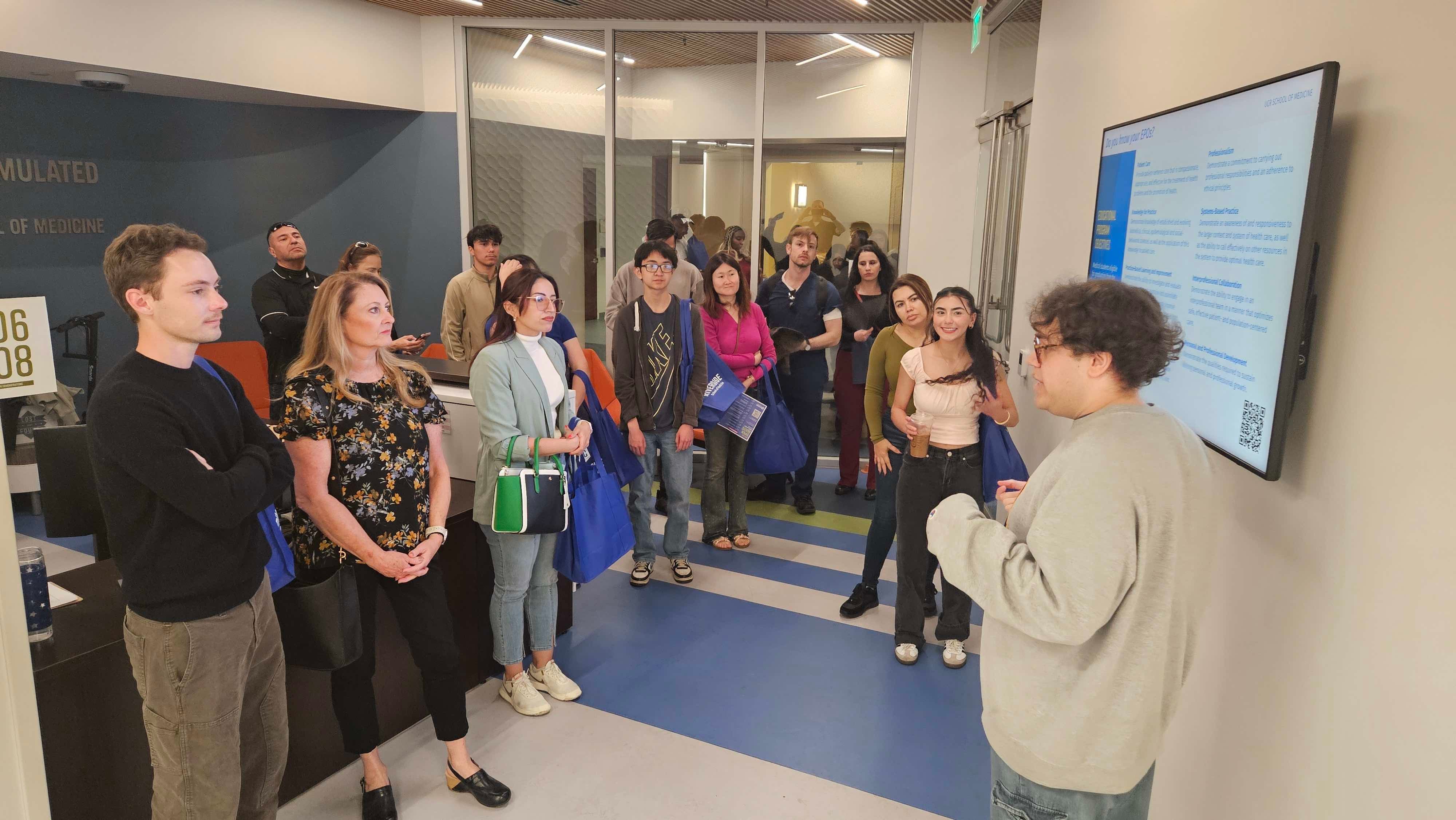 Maryam Azizadah, an incoming student to the SOM class of 2029 from Orange County, toured the center with her parents. “I think it’s amazing that it gives students that opportunity to really practice their clinical skills before they get into rotations so that they feel prepared and not just thrust into a new situation,” Azizadah said.