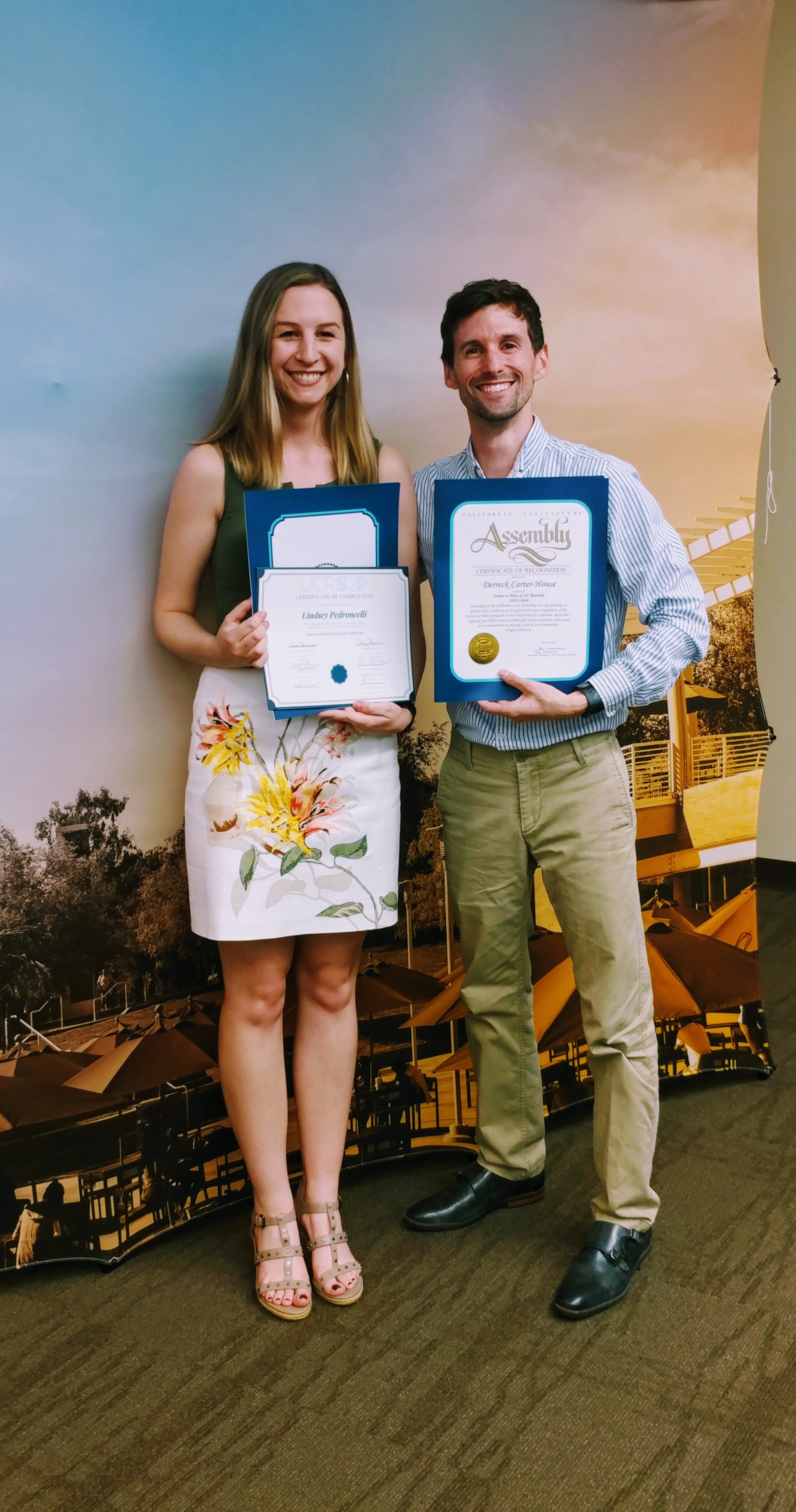 Plant Pathology graduate students Derreck Carter-House and Lindsey Pedroncelli completed a rigorous and competitive Certificate program and earned official Science to Policy (S2P) Certificates from UCR. Both were also presented with training certificates from the California State Assembly by the office of Assemblyman Jose Medina. See more here at the Science to Policy Website.