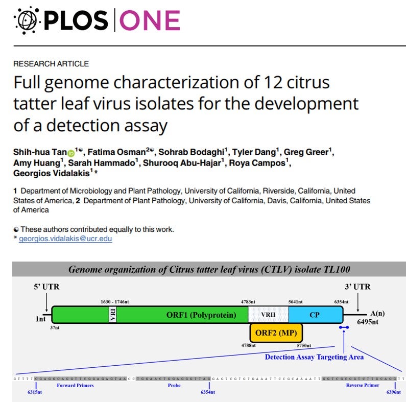 A paper from the Georgios Vidalakis Lab at UC Riverside has now been published on PLOS ONE.