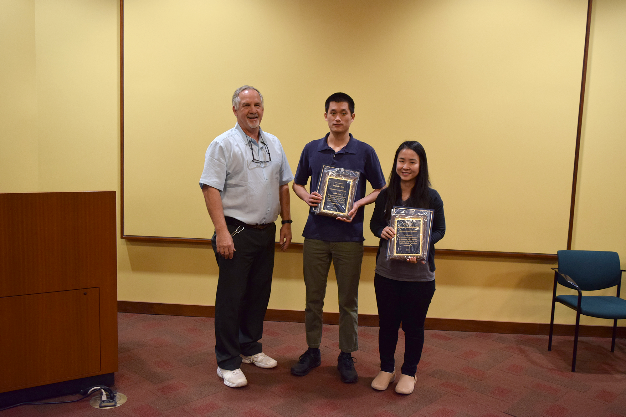 Photo from L to R: Dr. Jim Adaskaveg( Awards Chair), Daniel Chen, and Wiphawee Leesuthphonchai