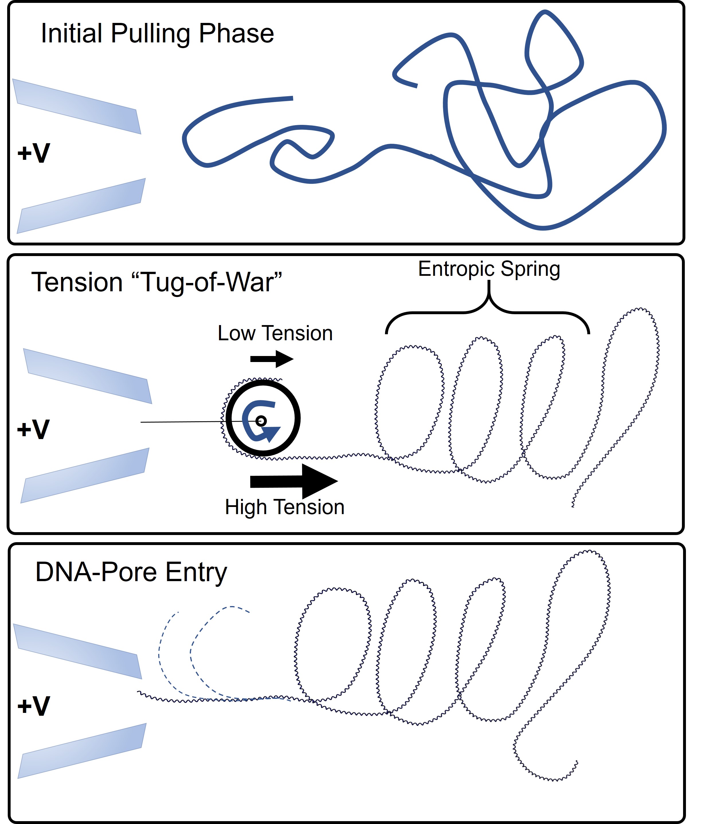 Studying fluid flow and its role on DNA capture kinetics, coil dynamics, and DNA gating!