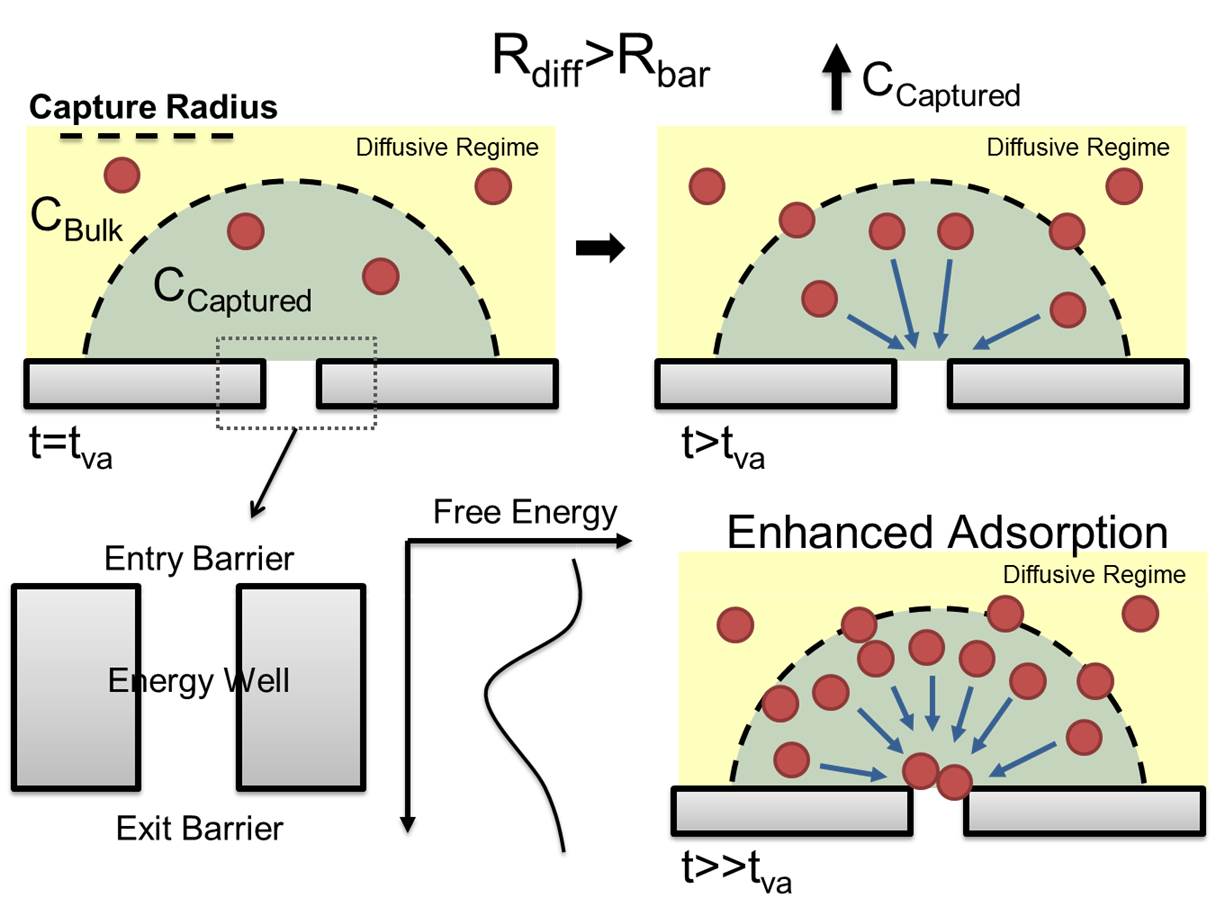 Diffusion-based capture describes the process of a molecule transitioning from a state with low voltage-mediated displacement (i.e., diffusion-dominated) to a position around the pore where the molecule undergoes biased motion. However a second rate limiting step also exists. The translocation process can also be described by the Van't Hoff-Arrhenius equation wherein the rate of translocation is determined by the energy barrier at the pore's entrance. The delivery of the analyte is necessary but not sufficient to result in translocation but rather the analyte waits until it has enough energy to climb the energetic barrier and enter the pore. Understanding the molecular transport properties of various nanofluidic pores is essential to building sensors which can not only detect, but also trap and manipulate molecules as well.