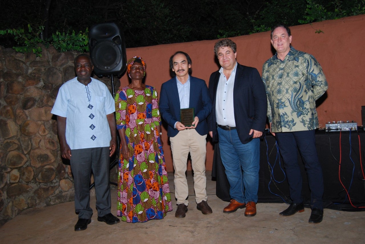 The photo (above), provided by Jan Fierro, depicts, from left to right: Robin Buruchara, Joyce Mulila-Mitti, Bao Lam Huynh, Barry Pittendrigh, & John Medendorp.