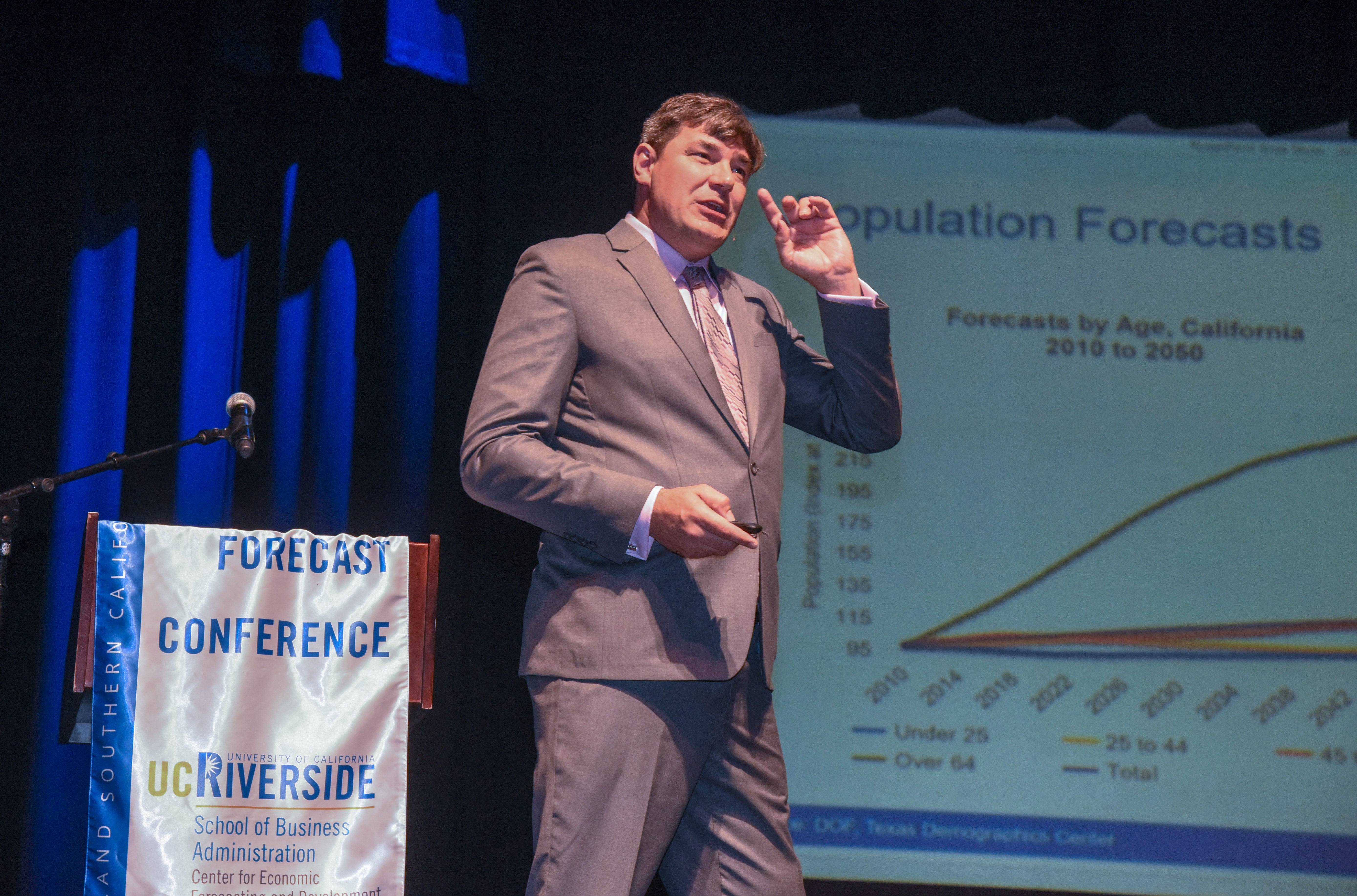 Following introductory remarks by UC Riverside Chancellor Kim A. Wilcox and UCR School of Business Dean Yunzen Wang, speakers from the School of Business Center for Economic Forecasting and CBRE Properties presented detailed analyses of how the region has changed in the past ten years and the directions they expect change to occur in the future.