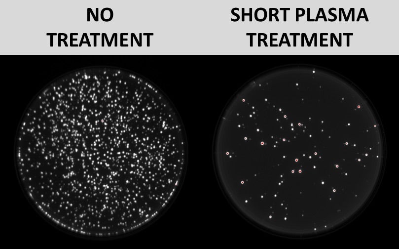 The faculty researchers, along with doctoral students Joseph Schwan, Troy Alva, and Brian Lupish; and postdoctoral scholar Giorgio Nava, contaminated surgical masks with E. coli, a bacterium commonly used to test sterilization, and subjected the masks to several minutes of the low-temperature plasma.