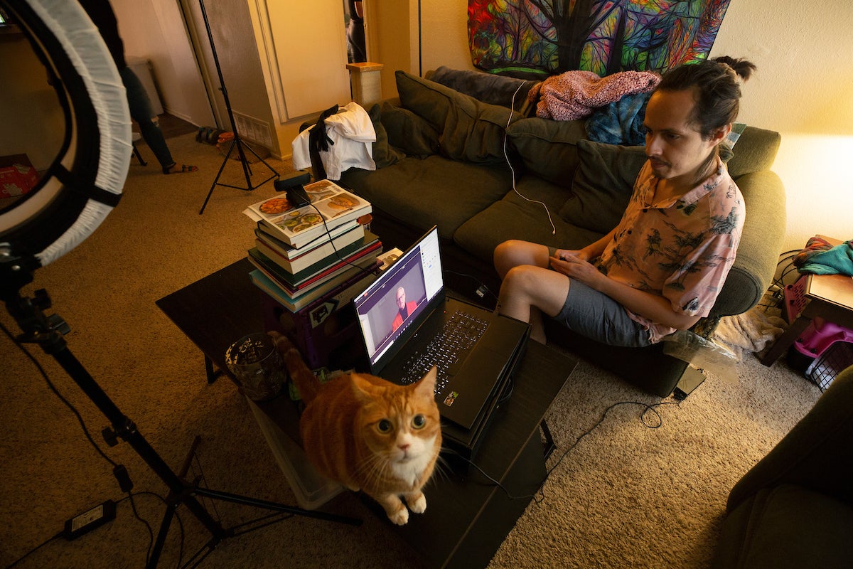 Lawson’s family logged in to watch from Los Angeles, Long Beach, and Sacramento. Lawson, 22, described the virtual experience as “interesting” but still loved performing on of their favorite songs with only having their roommate and two cats, Gadget and Gin, to cheer from the couch.