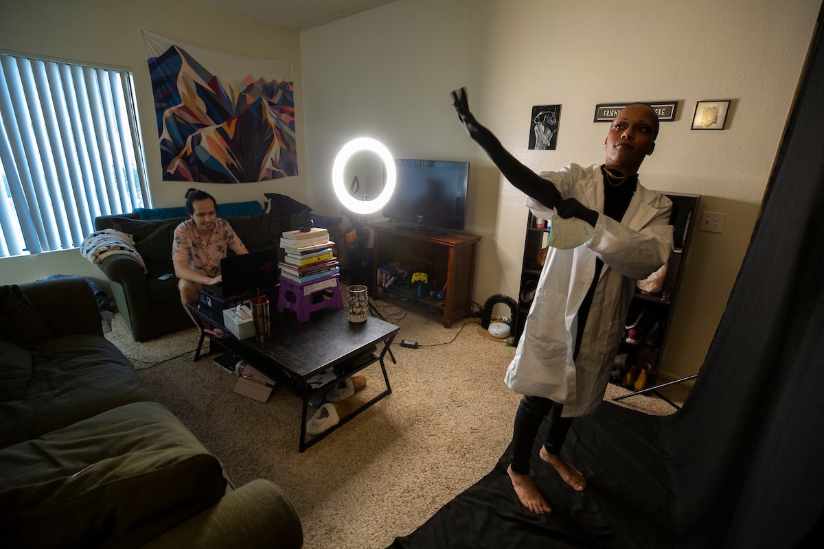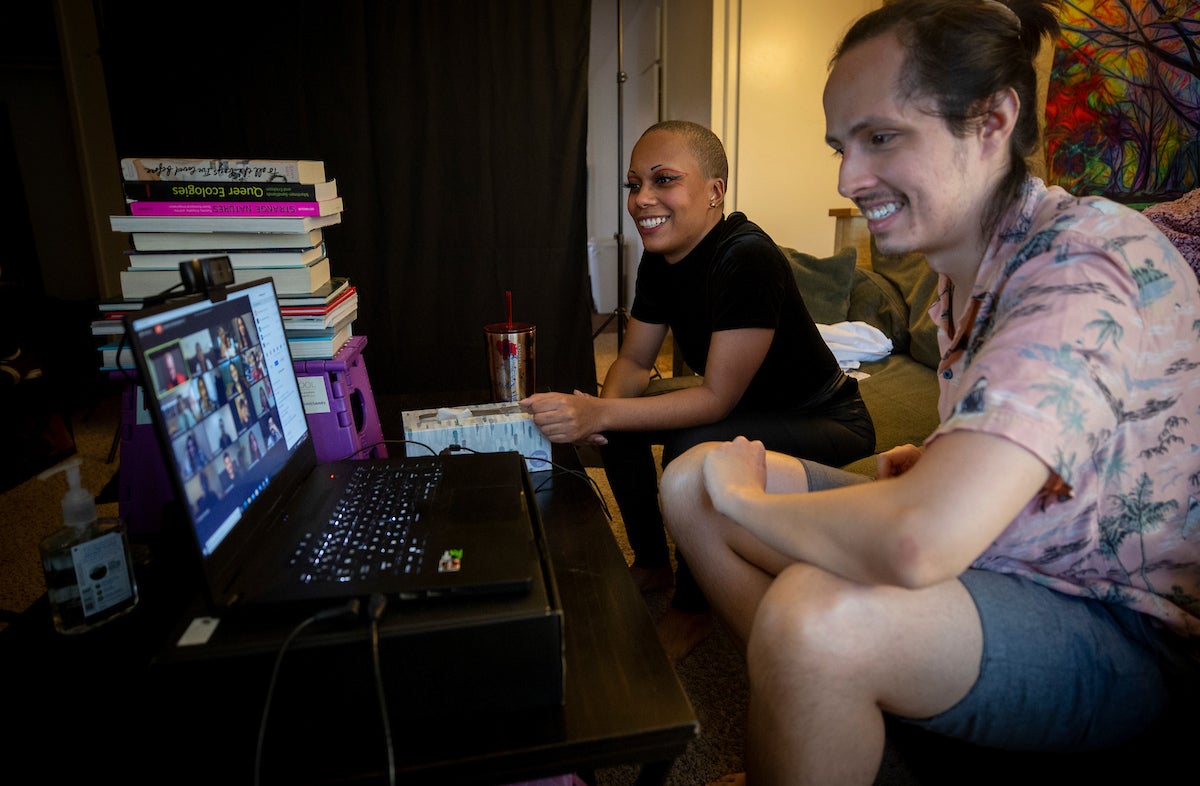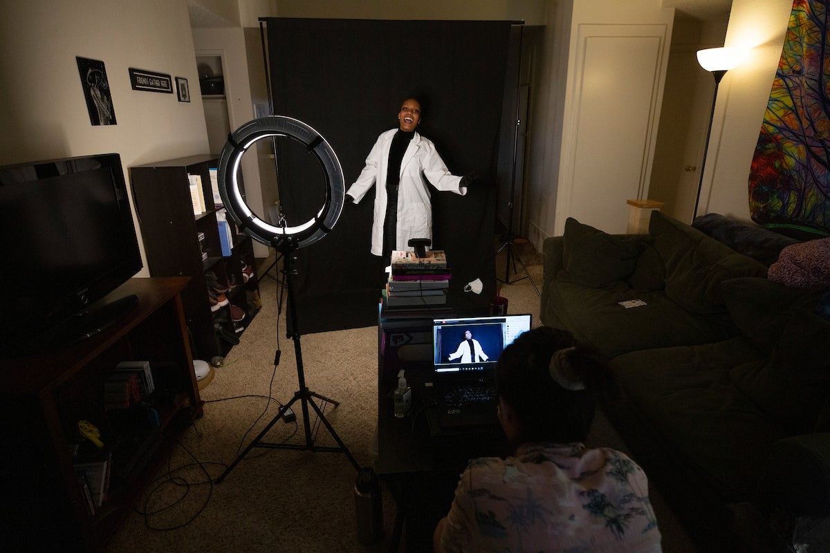 Among them was Winter Lawson, who prefers the pronouns they, them, their. Lawson sang “Dentist!” from “Little Shop of Horrors” on Friday, June 12, from their Riverside living room, with the help of roommate Johnny Macias, ’19.
