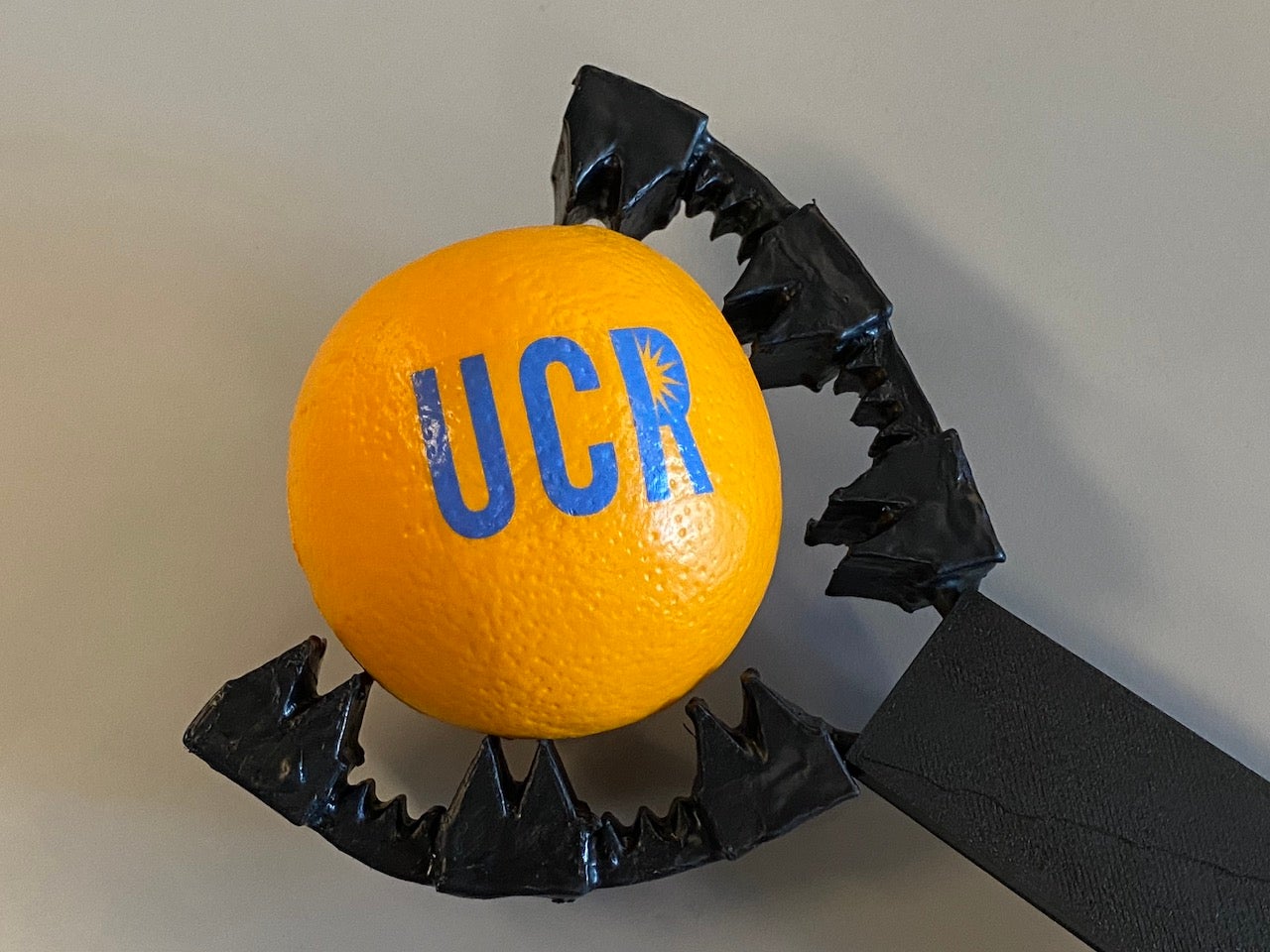 Header photo: A pneumatic gripper holds a UCR orange. (William Grover)