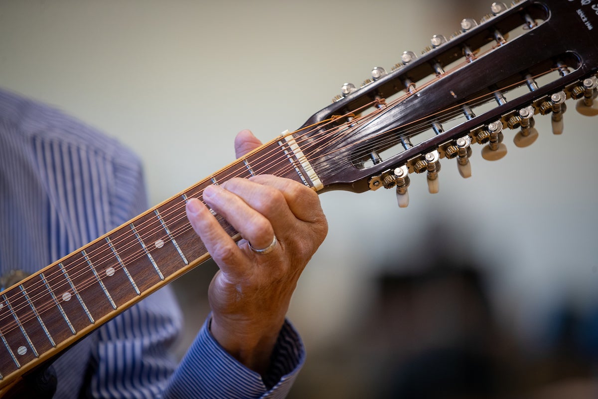 De Leon uses both the stage and his classroom space to steward the rondalla tradition and transmit its rich heritage. During a recent class, Ricky Zeng, 23; Karen Plascencia, 23; and Jiaqi Li, 24, took their instruments and followed De Leon’s instructions. The students followed the notes on paper or on their cell phones.