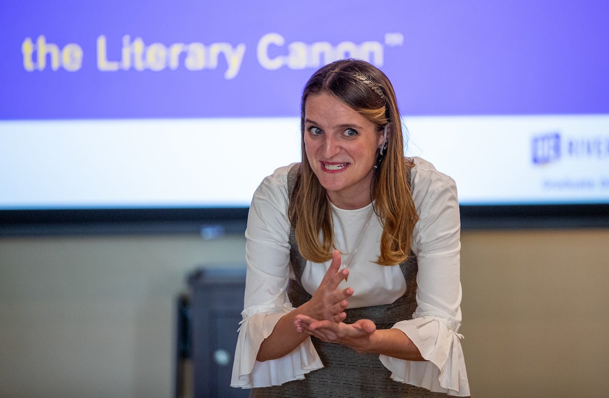 - Third place – $1,000: Paige Goodwin, MFA in creative writing. Presentation title: “Choosing Our Gods: Restructuring the Literary Canon.”