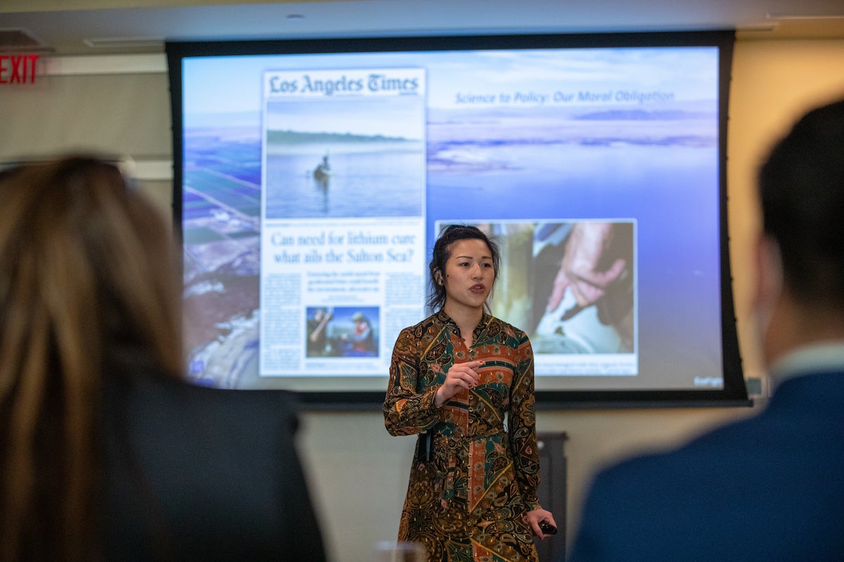 - Caroline Hung, Ph.D. in earth and planetary sciences. Presentation title: “From Toxic Muds to Toxic Dust on a Drying Lakebed: Methods in Biogeochemistry to Inform Salton Sea Policy.”