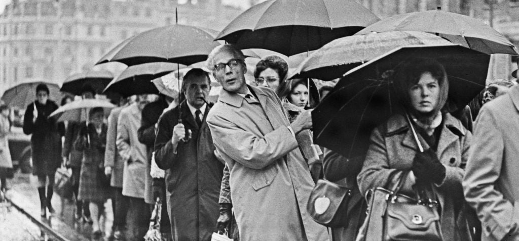 Photo: A bus queue at Charing Cross in London, UK, Dec. 6, 1972 / Getty Images