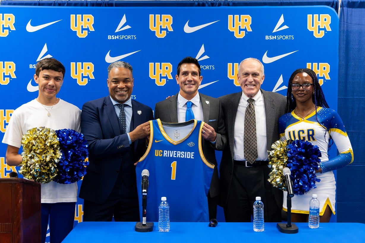 Heralding his ties to the Inland Empire and his commitment to winning through hard-work principles, UC Riverside on May 6 introduced its new men’s basketball head coach, Gus Argenal.