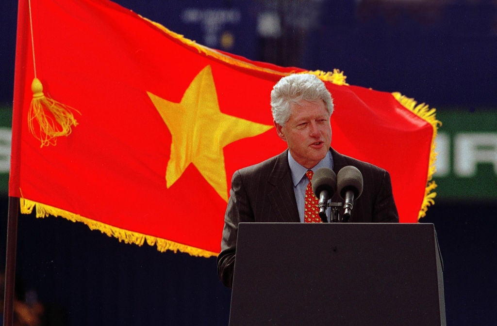 Featured photo, above: U.S. President Clinton speaks Nov. 19, 2000 during a visit to the International Container Terminal in Ho Chi Minh City (Saigon), Vietnam. Clinton was the first American president to visit Vietnam since the war ended in 1975. Photo by Getty Images.