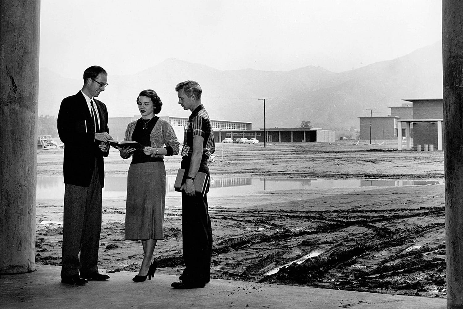 There was torrential rain on the weekend preceding UCR’s opening. There weren’t yet concrete walkways throughout most of campus, and it was a mud bath. The Physical Education building flooded, including the locker rooms and a basement bookstore. A crate of books was damaged. Much mopping commenced.