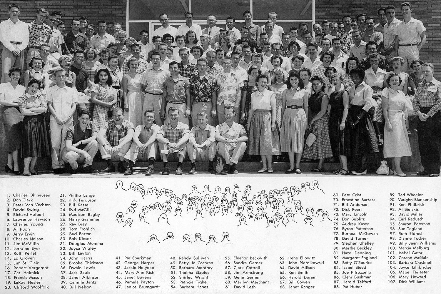 There were 126 students, 11 of whom registered at the last minute. The first classes were at 8:30 a.m. Jim McMillin, a Navy reservist stationed at Camp Pendleton, had the distinction of being the first student admitted. McMillin was typical of the spring 1954 class — many of them were transfer students, in their 20s, and many were Korean War veterans.