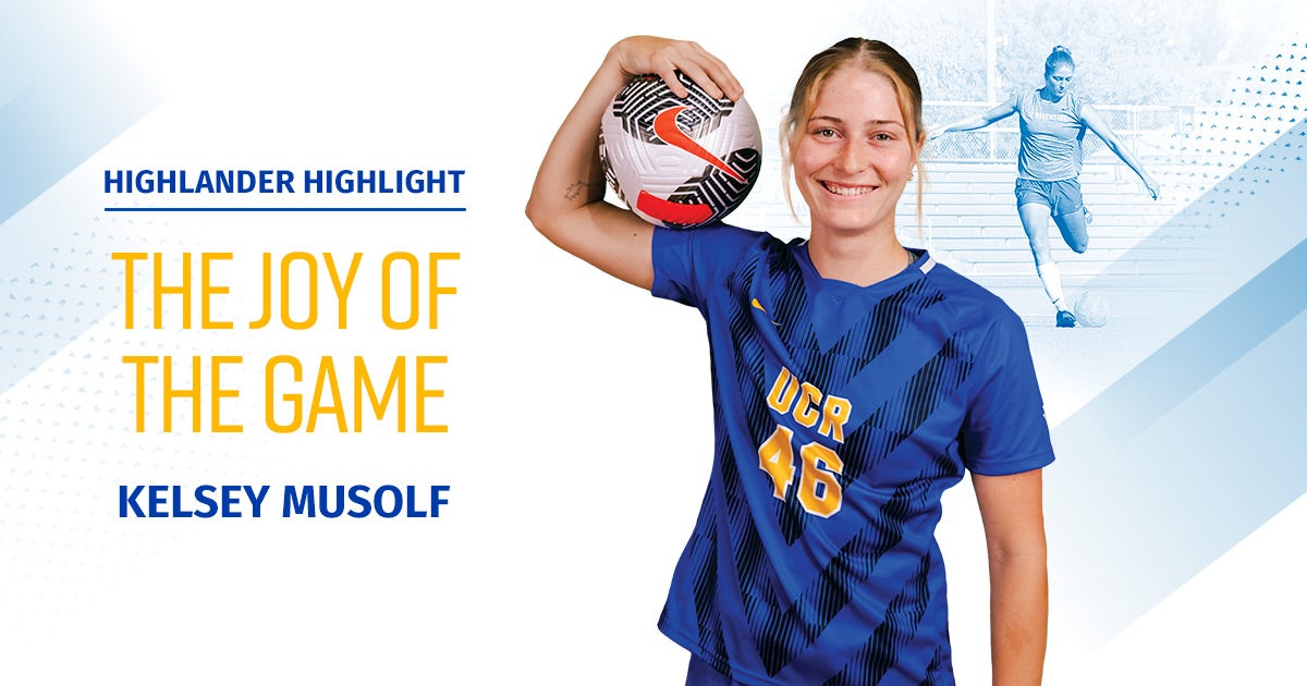 F ifth-year soccer player and computer science graduate student Kelsey Musolf has become a standout leader in UCR athletics, both on and off the field. Raised in San Jose, California, Musolf began playing soccer at age 5, fully committing to the sport in high school. Her coach and mentor, Eric Paulson, helped shape her approach to the game, she said, reminding her that “soccer can be both competitive and enjoyable” and she didn’t have to give up one for the other.