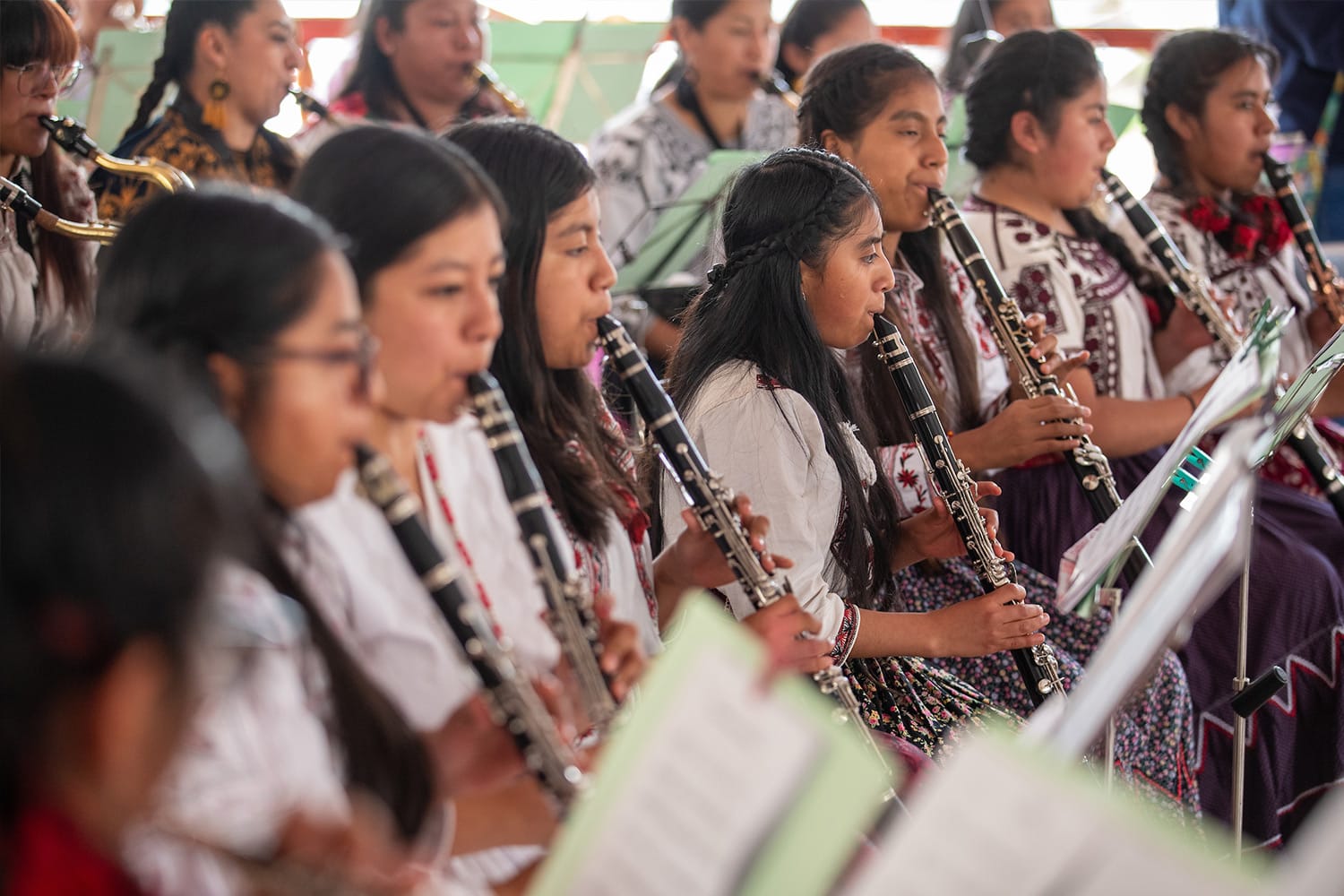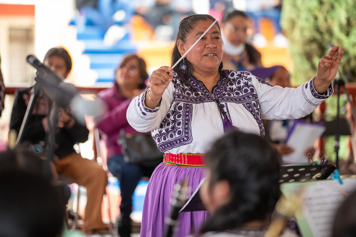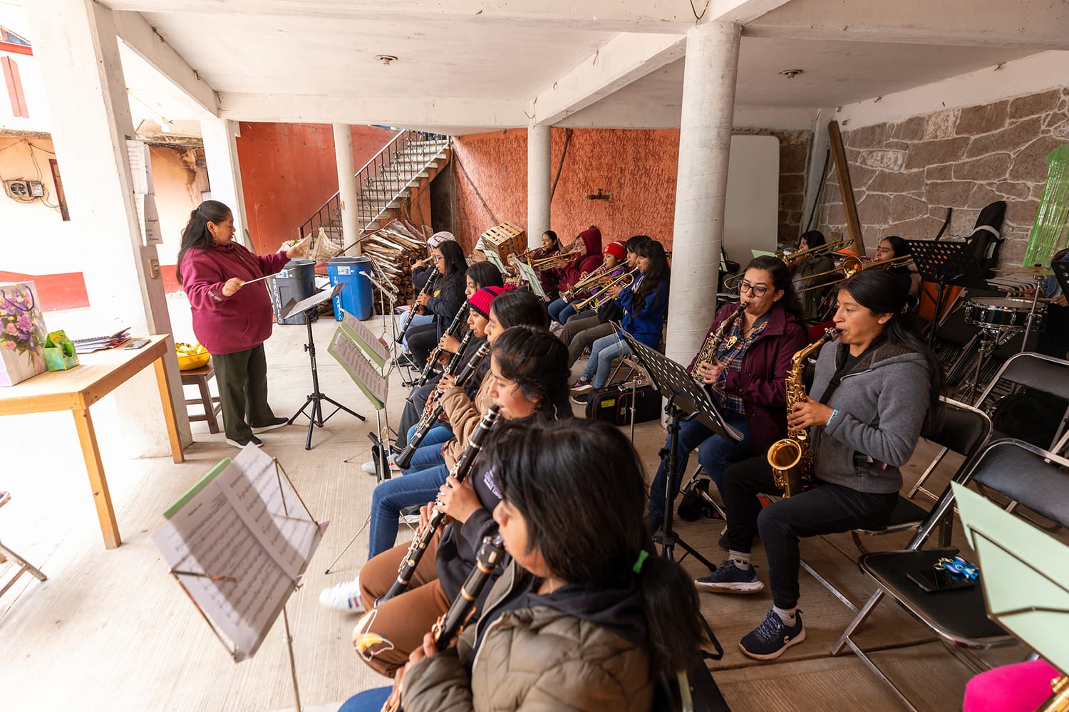 At Leticia “Lety” Gallardo Martínez’s house, children, teens, and women arrive for music practice. During school hours, Gallardo Martínez teaches at the local elementary school. After class, she assumes another role: composer and music conductor of the all-female Indigenous philharmonic band Mujeres del Viento Florido. Since 2009, Gallardo Martínez has been building the band, made up of about 50 women ages 9 to 47.