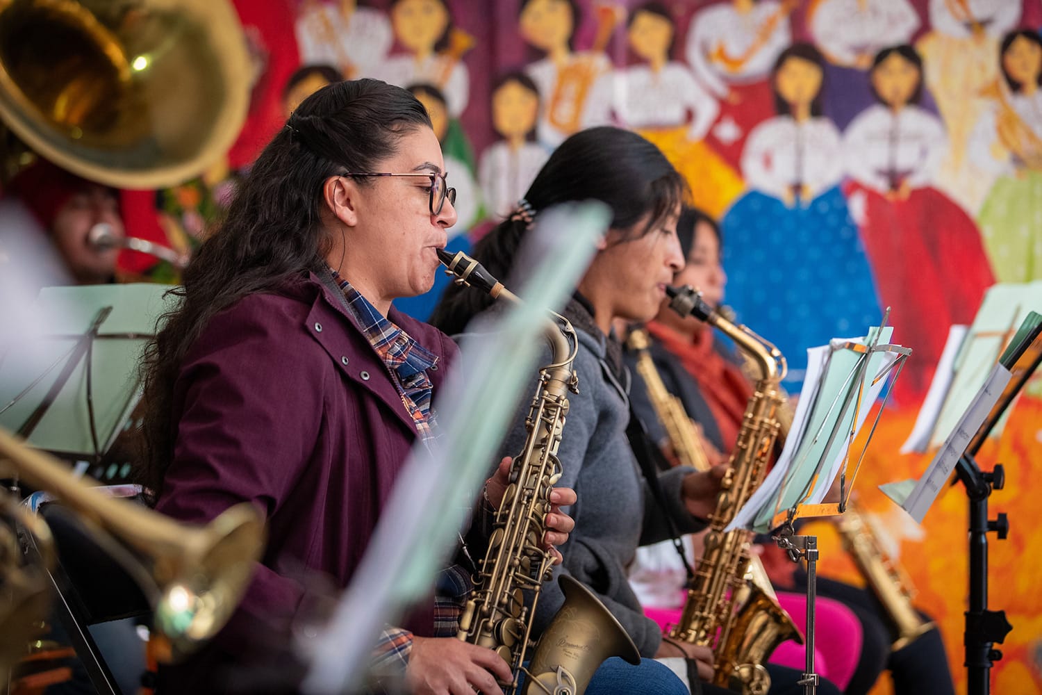 The concert was significant in many ways: It was the first time Mujeres del Viento Florido was a featured band; Gallardo Martínez was recognized as a changemaker by the Oaxaca-based nonprofit Fundación Soprano Fany Leyva; and, for the first time, Chávez was invited to join the band as a guest saxophone player.