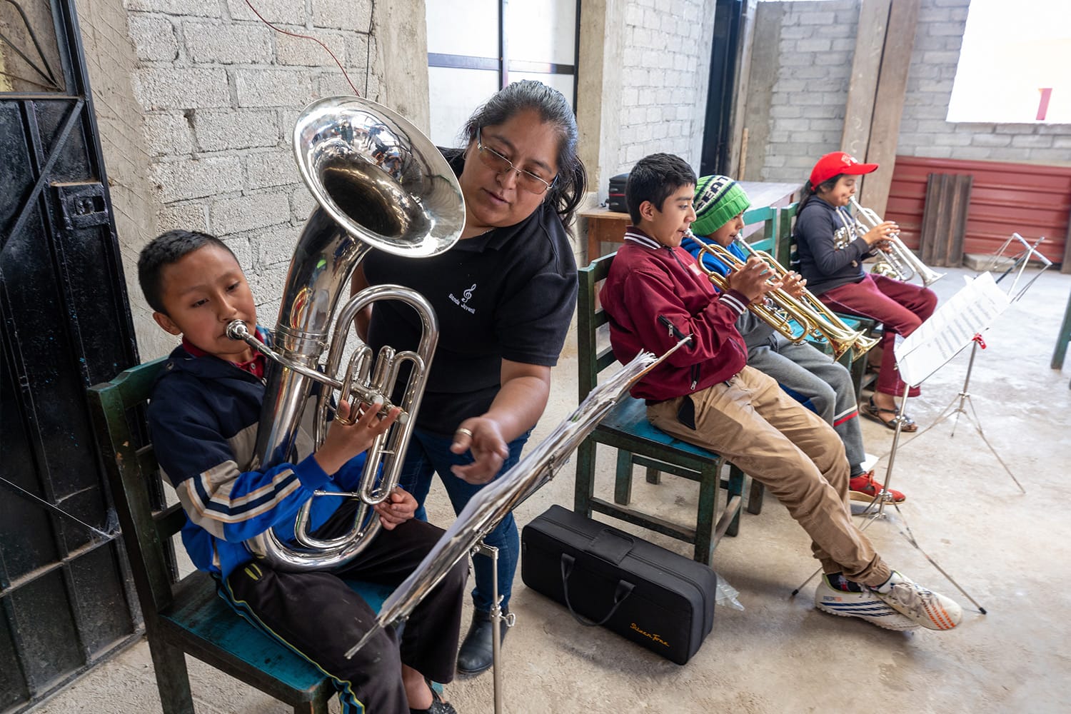 S hortly before 4 p.m., the center of town reverberates with sounds of trumpets, cymbals, and clarinets. A steady stream of children with deep brown eyes and rosy cheeks — a product of the brisk mountain air — walk into various municipal classrooms. Strapped on their backs are tubas, snare drums, and saxophones. It’s a typical afternoon in late August in Santa Maria Tlahuitoltepec, a community sitting at 7,000-feet in elevation in the southern state of Oaxaca, Mexico.