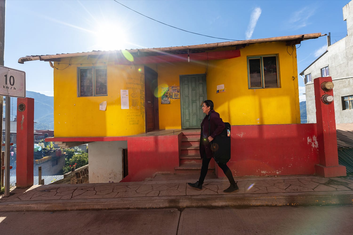 Chávez concludes her first day in Tlahui with a total of eight interviews with the women of Mujeres del Viento Florido. At 10 p.m., she straps her saxophone bag around her chest along with the cameras and makes a 10-minute trek in the mist up a hilly street to her hotel.