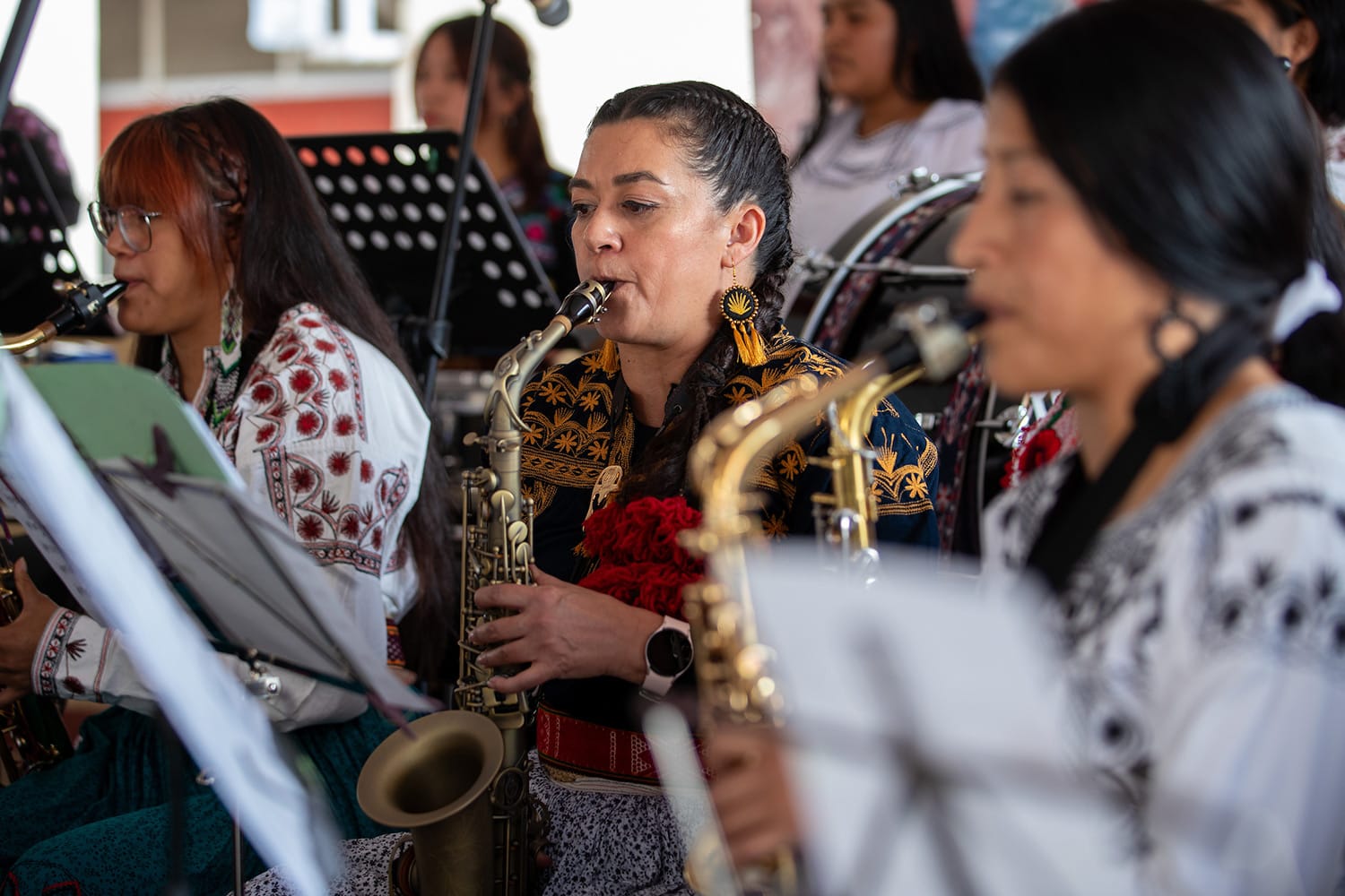 “To my knowledge, we are the only band in the country with these characteristics: all-female, Indigenous, and regional, meaning we accept women from any community. This is what we are devoted to,” said Gallardo Martínez, who has a bachelor’s in education from the Universidad Pedagógica Nacional de Oaxaca, and another in art from the Instituto Multidisciplinario de Especialización in Oaxaca.