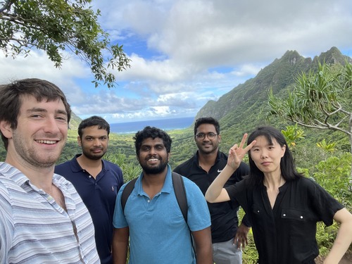 --Current and former ONE-Lab members in Kualoa Ranch: From left- Joseph, Dr.Uday (One-Lab-San Diego), Adhilsha, Dr. Nirjhar and Dr Cai.