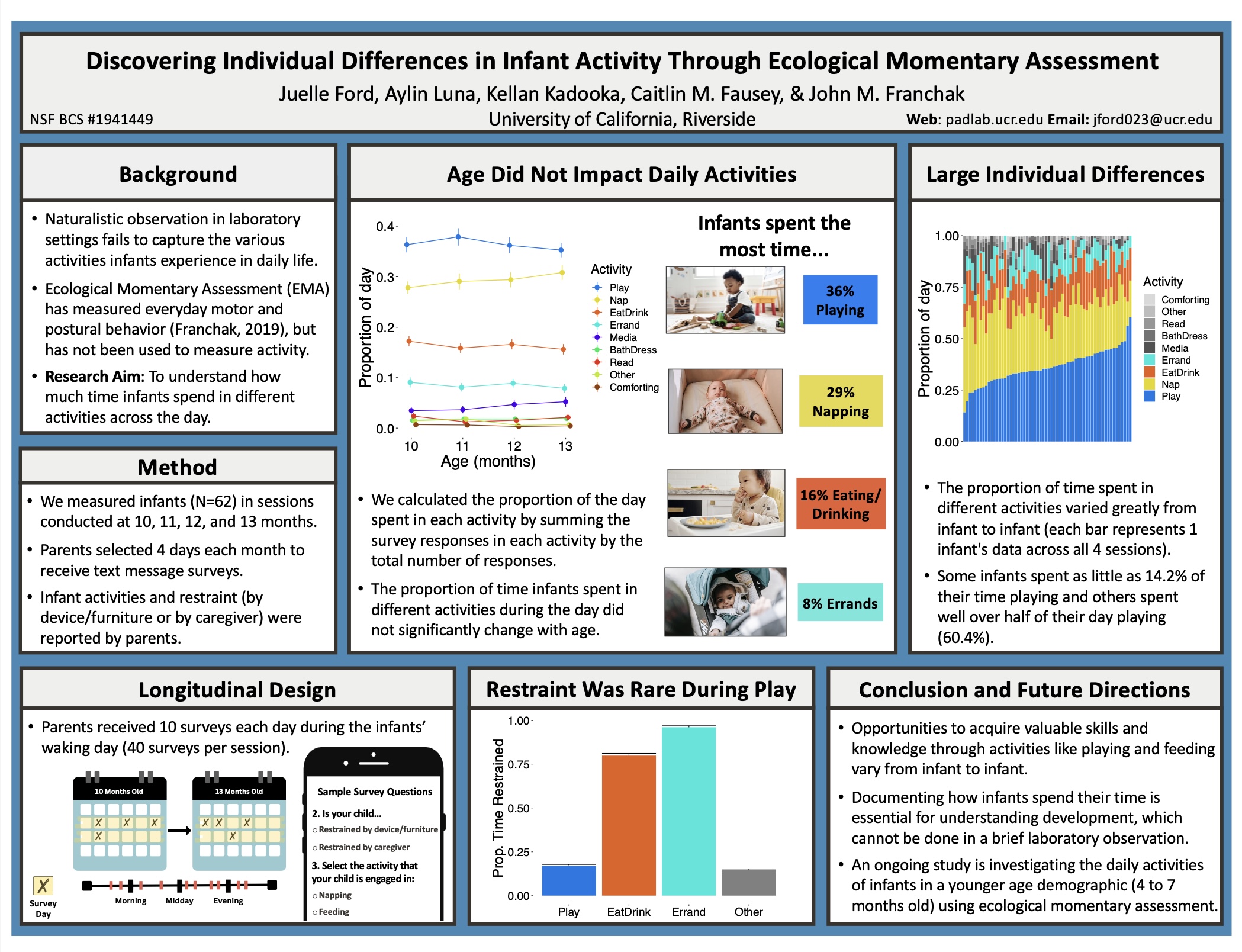 Juelle Ford, Aylin Luna, Kellan Kadooka, Caitlin Fausey, and John Franchak presented “Discovering Individual Differences in Infant Activity Through Ecological Momentary Assessment”