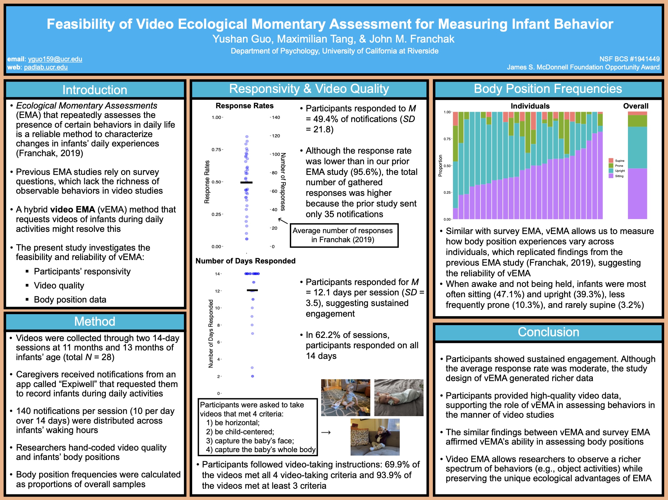 Yushan Guo, Maximilian Tang, and John Franchak presented “Feasibility of Video Ecological Momentary Assessment for Measuring Infant Behavior”