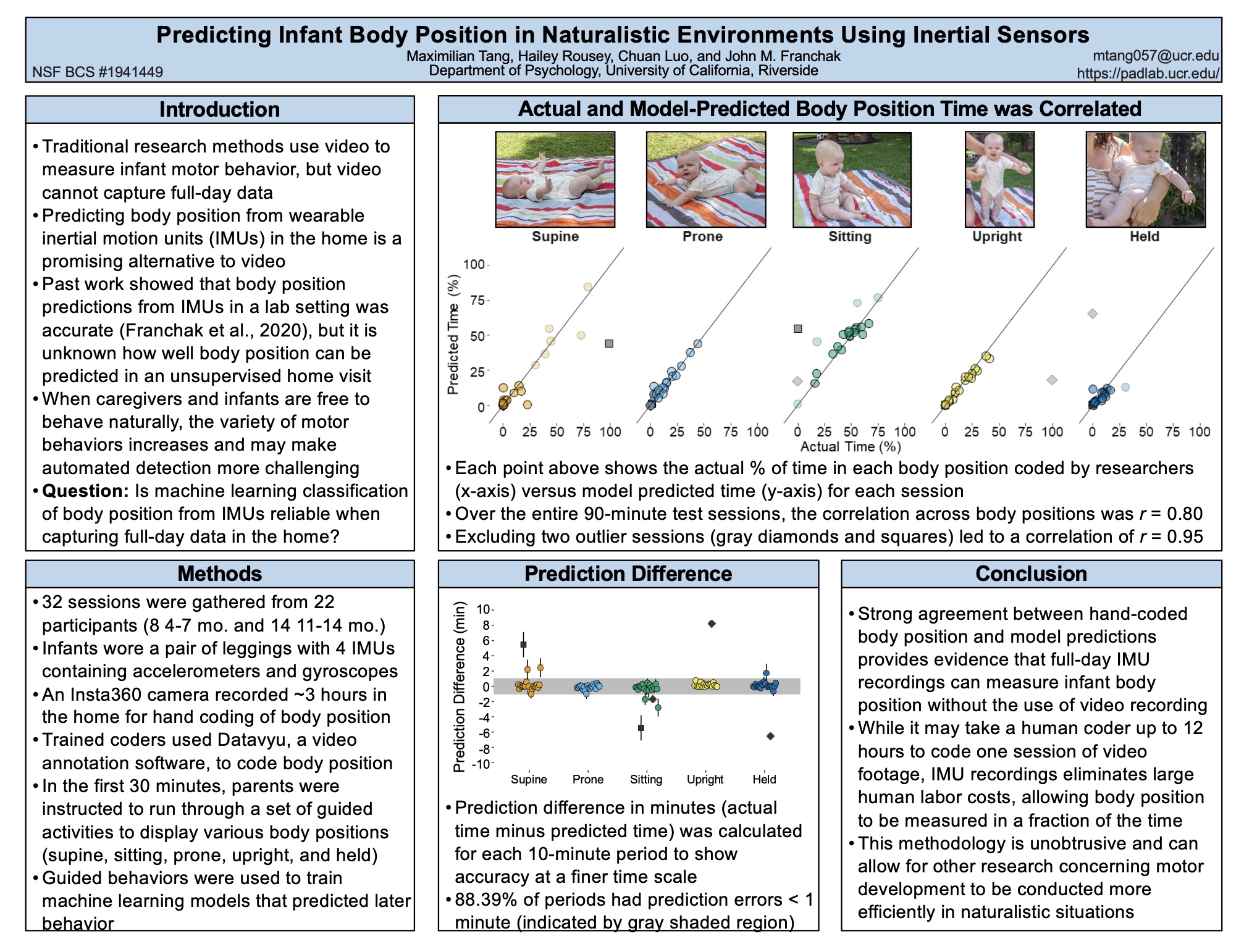 Maximilian Tang, Hailey Rousey, Chuan Luo, and John Franchak presented “Predicting Infant Body Position in Naturalistic Environments Using Inertial Sensors”