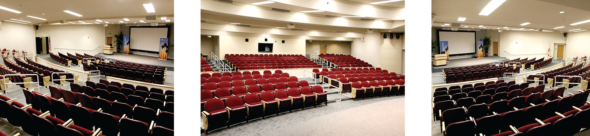 - Capacity: Seats up to 299 guests. Each chair has a flip-up desktop.