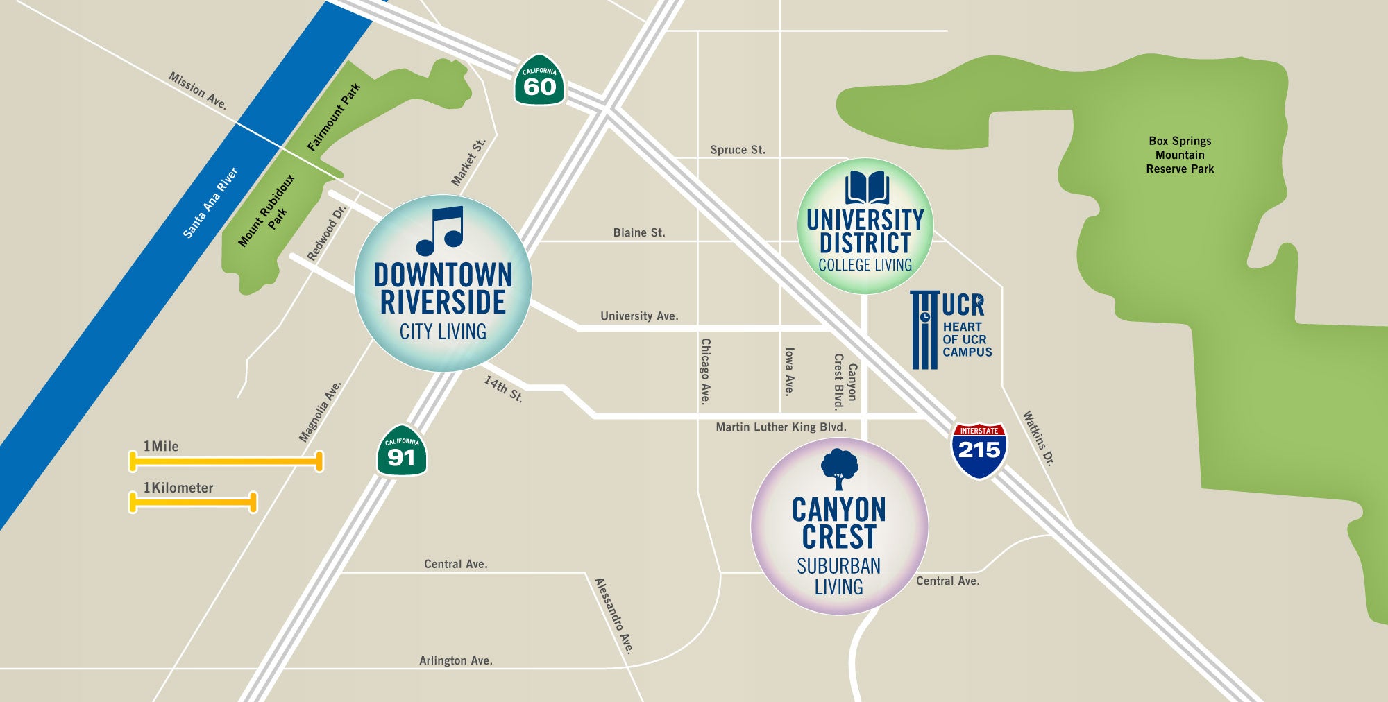 The City of Riverside is a vibrant college town that welcomes and supports a diverse community. UC Riverside (UCR) shares the city with over 15 other higher education institutes. This makes Riverside home to a mighty collection of college students who are attracted to the city’s perfect balance of small-town friendliness and big-city fun.