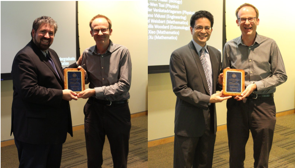 Professor William Grover received UCR’s 2018 Junior Faculty Excellence in Teaching (JET) Award in the Celebration of Teaching ceremony that took place at the UC Riverside Alumni and Visitor’s Center on May 22. The award honors junior faculty members “whose early career record demonstrates the commitment and determination of an outstanding teacher while pursuing research excellence.” In presenting Dr. Grover with the award, Dr. Morris Maduro, chair of UC Riverside’s Academy of Distinguished Teachers, commended Dr. Grover for not only his excellence in the classroom but also his role in creating the TEC Center (an on-campus “makerspace” for undergraduate research) and his commitment to helping regional K-12 teachers include engineering content in their classrooms. As part of the award, Dr. Grover received the title of “UC Riverside Junior Faculty Distinguished Teaching Professor.”