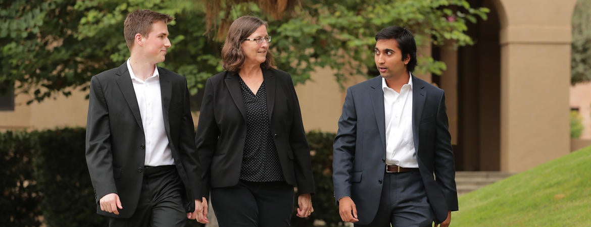 That commitment is also reflected in her role as faculty advisor to the Hylander Financial Group—a club for finance students who meet weekly to discuss stock market conditions and manage a real-fund $200,000 portfolio. She makes a clear connection between the importance of a hands-on experience, like the investment group, and a useful business education: “These students go out into the world and are successful because of this experience.”