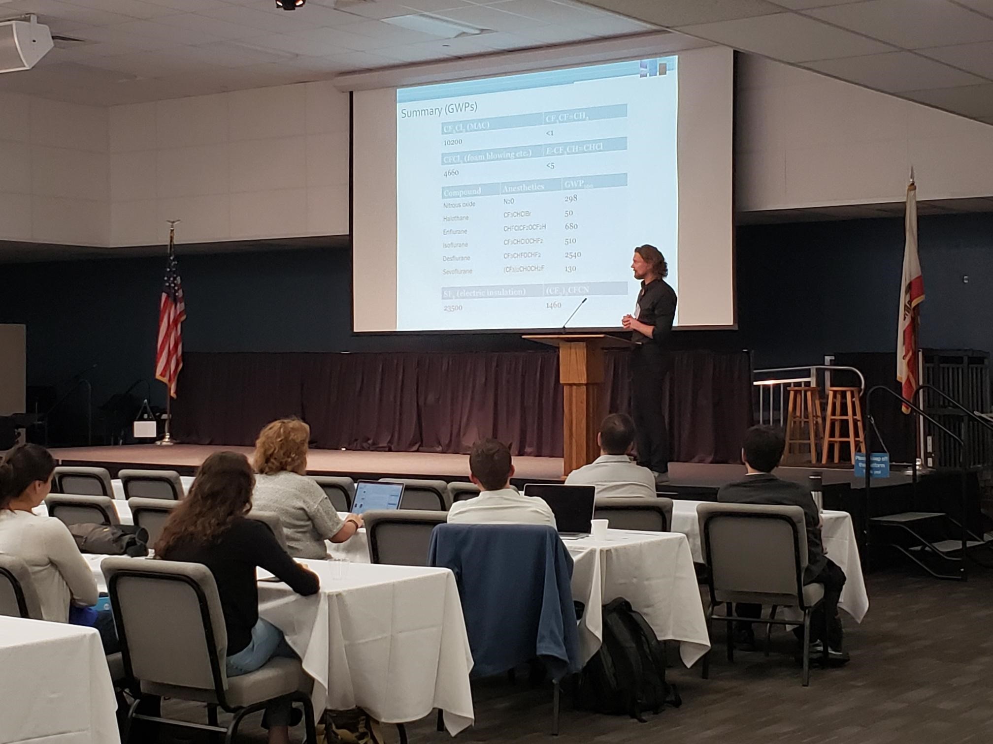 On May 10, 2019, CE-CERT hosted the 36th Annual Informal Symposium on Kinetics and Photochemical Processes in the Atmosphere (ISKPPA) at the Bourns Technology Center. This one-day symposium brought together over 130 researchers, students, and faculty from across Southern California to share their work on recent advancements in atmospheric chemistry. Universities from across Southern California were represented, including a number of students from Caltech and the University of California and Cal State systems. Students and other attendees presented posters, which were introduced through a 1-min madness session.