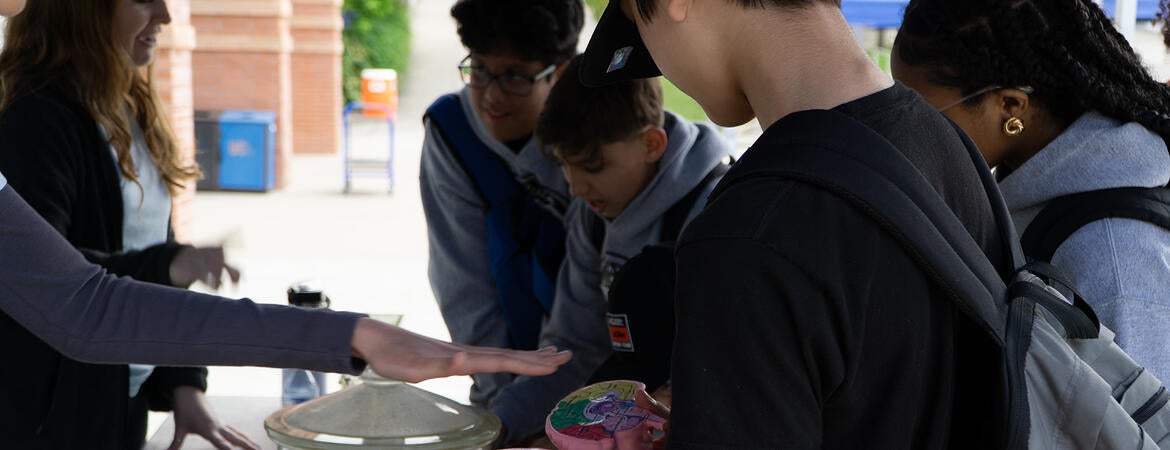 FEATURED PHOTO. A booth engages with visiting students by displaying models of the human brain, among others.