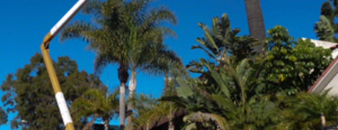 From the walking inspection that was conducted on Monday 29 November, one Canary Islands palm was identified on the Pacific Coast Highway as having a high probability of being infested with RPW. Don Hodel (an environmental horticulturist for the University of California Cooperative Extension, Los Angeles County with expertise in palms) arranged for a bucket truck with West Coast Arborists to be available for the morning of Wednesday 1 Dec 2010 so the suspect palm could be inspected. Josep Jacas (RPW expert from Spain) helped to remove damaged palm fronds from the palm of interest. He also examined the crown of the palm for RPW feeding damage, and for evidence of live RPW life stages (e.g., fresh cocoons or adults) on the trunk of the palm and in the foliage.