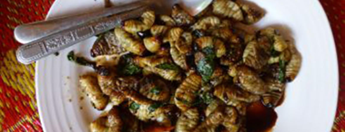 A dish of cooked weevil larvae. Photo credit: Hoddle Lab, UC Riverside.