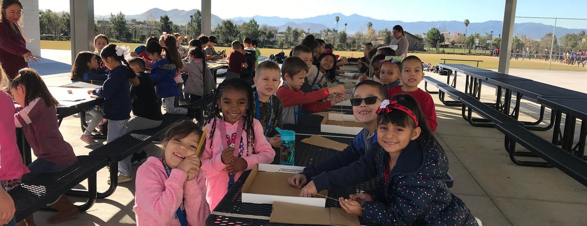 This past month, meanwhile, recent alumna and first-year teacher Leah Dawdy organized a STEM development workshop at Del Sol Academy, part of the Jurupa Unified School District. During the event, 110 first-graders got a crash course in engineering principles as they built marshmallow lunar landers and spaghetti towers. The idea was to get students not only interested in exploring science and engineering, but also involved in practicing important skills such as making predictions, collecting data in the form of observations, evaluating outcomes, and suggesting revisions.