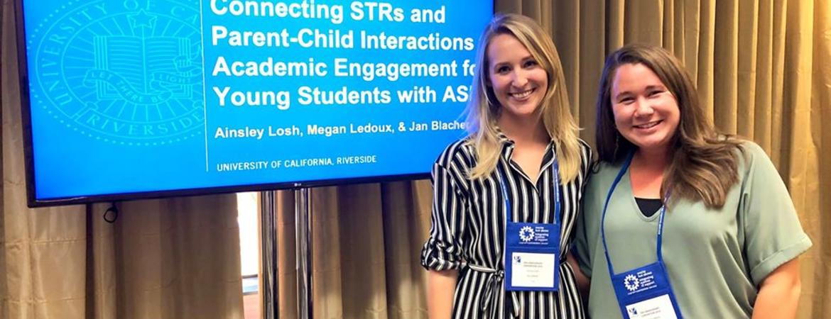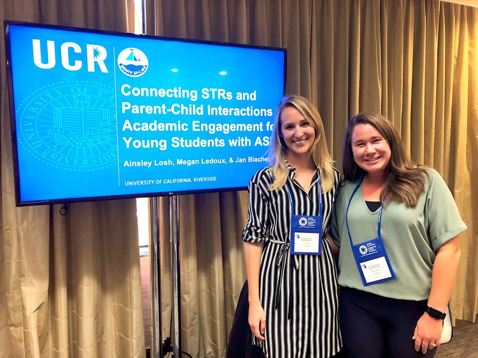 The following is a round-up of research and accomplishments sent on behalf of UCR SEARCH Center: Professor Jan Blacher; Assistant Professor Katherine Stavropoulos; Professor Keith Widaman; Assistant Professor Raquel Rall. Yasamin Bolourian, PhD Special Education, Post-Doctoral Fellow; Elizabeth Baker, PhD student, School Psychology ; Megan Ledoux Galligan, PhD candidate, Special Education ; Ainsley Losh, PhD student, School Psychology ; Elina Veytsman, PhD student, School Psychology ; Michelle Heyman, PhD student, School Psychology ; Tricia Choy, PhD student, School Psychology ; Katie Fullerton, PhD student, Special Education ; Giselle Salinas, PhD student, Special Education ; Ann Marie Martin, PhD candidate, Special Education