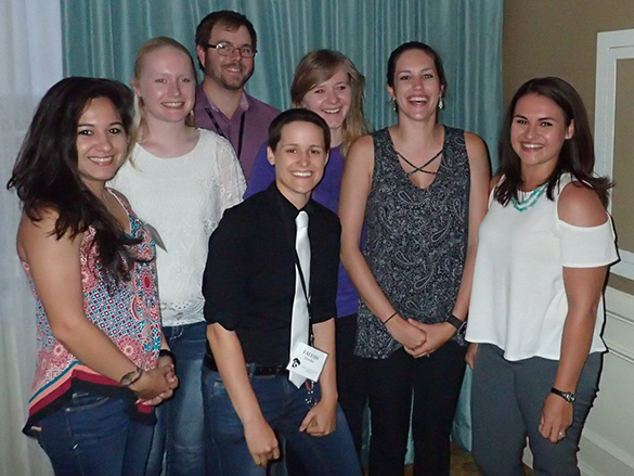 Also, several students were recipients of the LIWC Student Travel Awards, sponsored by Bayer Animal Health, to assist in attending the conference. Pictured below are recipients (left to right) Brenda Leal, Jessica Thomson, Levi Zahn, Fallon Fowler, Klara Zurek, Mary Mills, and Kylie Sherrill. (Photo credit: Annie Rich)