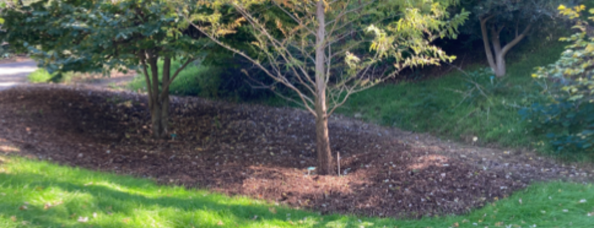 - We removed the weeds and mulched under the winged elm and dawn redwood in the Deciduous Forest area, near the base of the steep driveway.