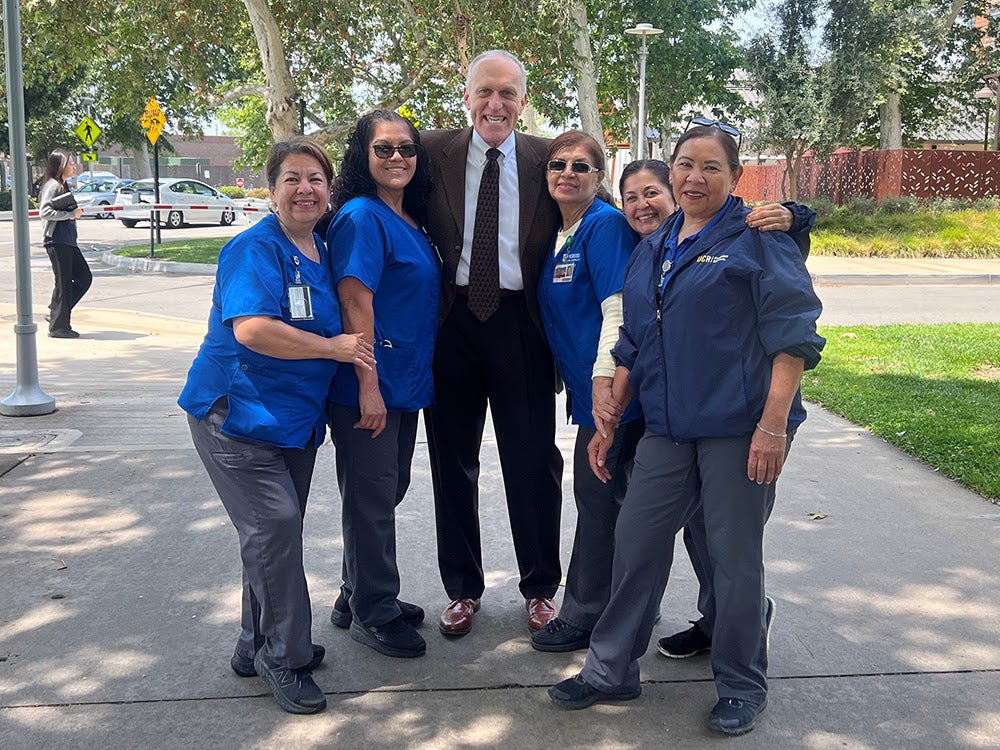 - A selfie with Arnold Martin, one of our landscapers, on a recent morning. I’ve talked with Arnold over the years and gotten to know about him and his family, including his daughter, who is now working on her Ph.D at UCR.