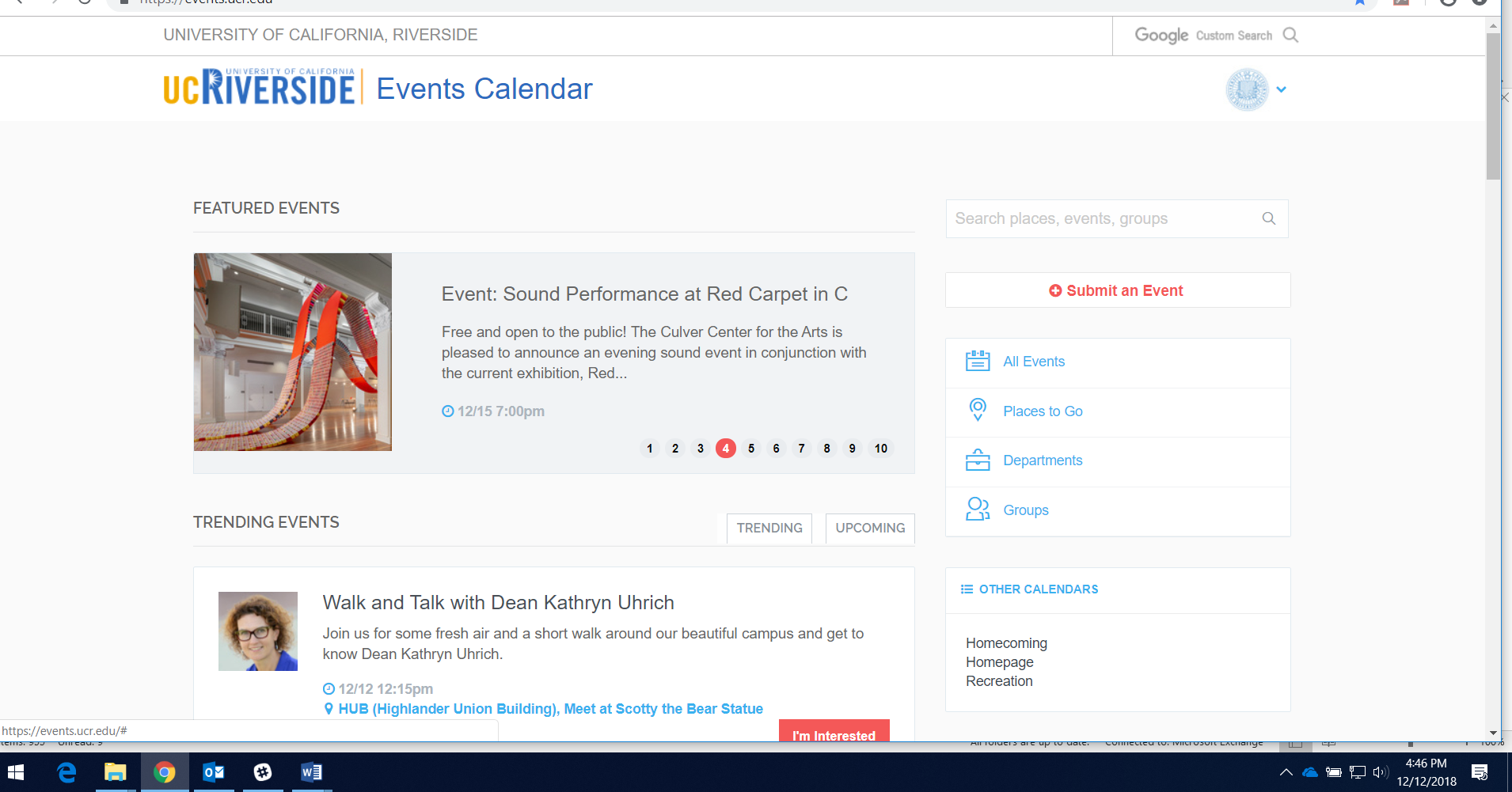 Events can be cross-promoted through other channels such as UCR News, Inside UCR, UCR Life, other college and school websites, or as one of the featured items at the top of the calendar page.