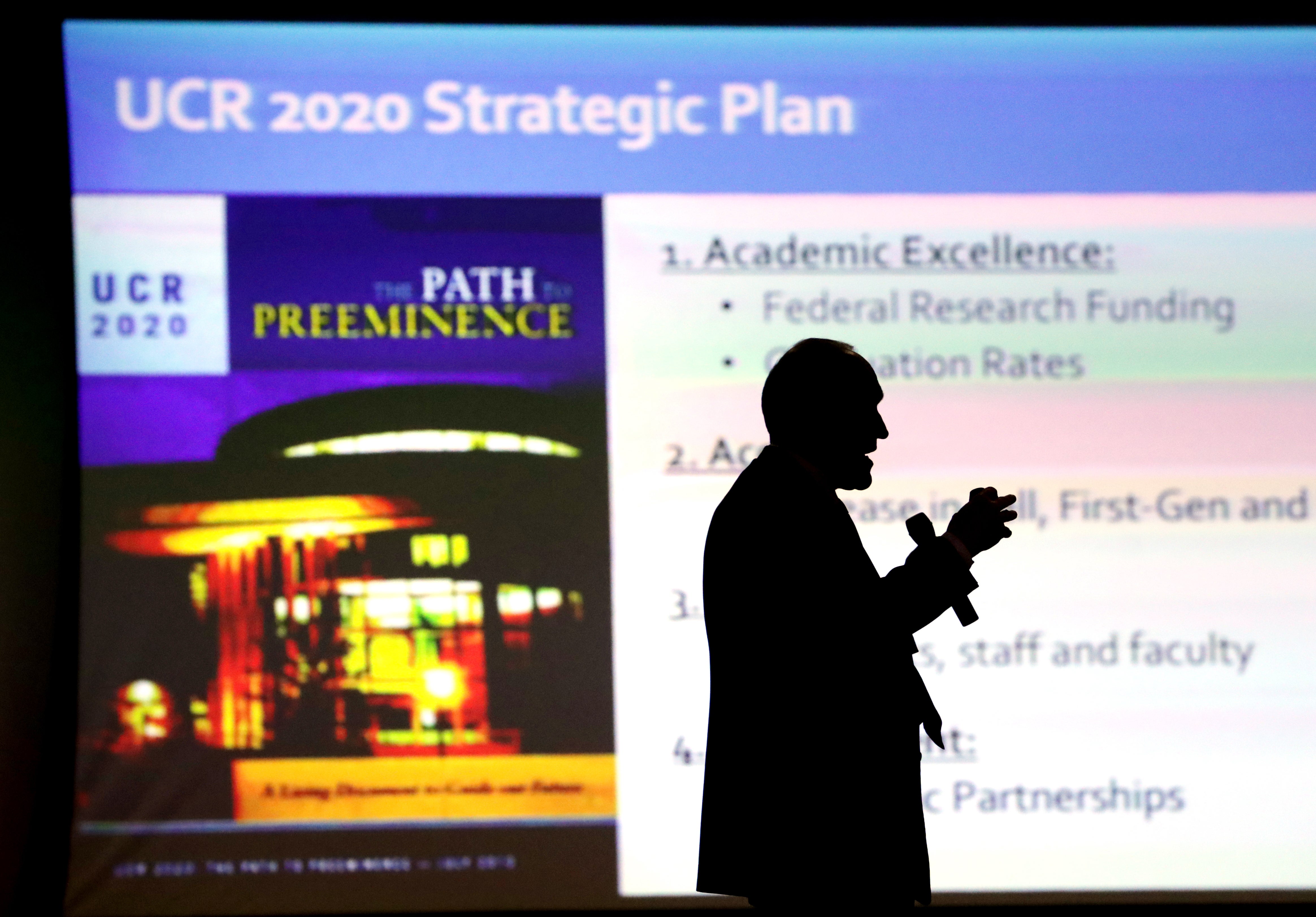 The campus is nearing the completion of its current 10-year strategic plan, “UCR 2020: The Path to Preeminence,” which set goals for academic excellence, access, diversity, and engagement. Wilcox said UCR has made progress on all four areas, noting how federal research funding and graduate rates have exceeded their goals.
