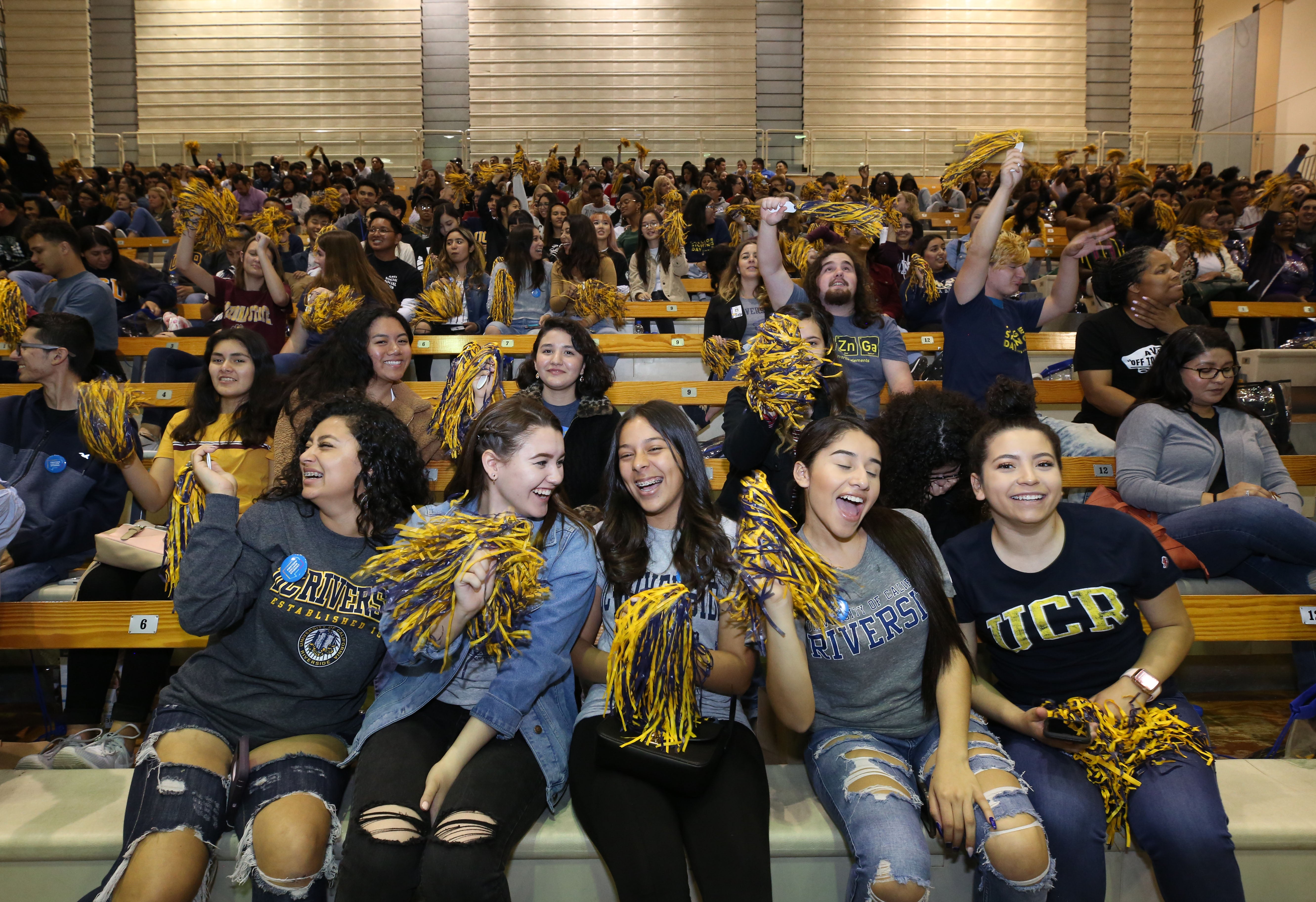 About 860 college-bound high school students attended College Signing Day at UC Riverside on Wednesday, May 1, as part of a simultaneous celebration across all nine University of California undergraduate campuses.