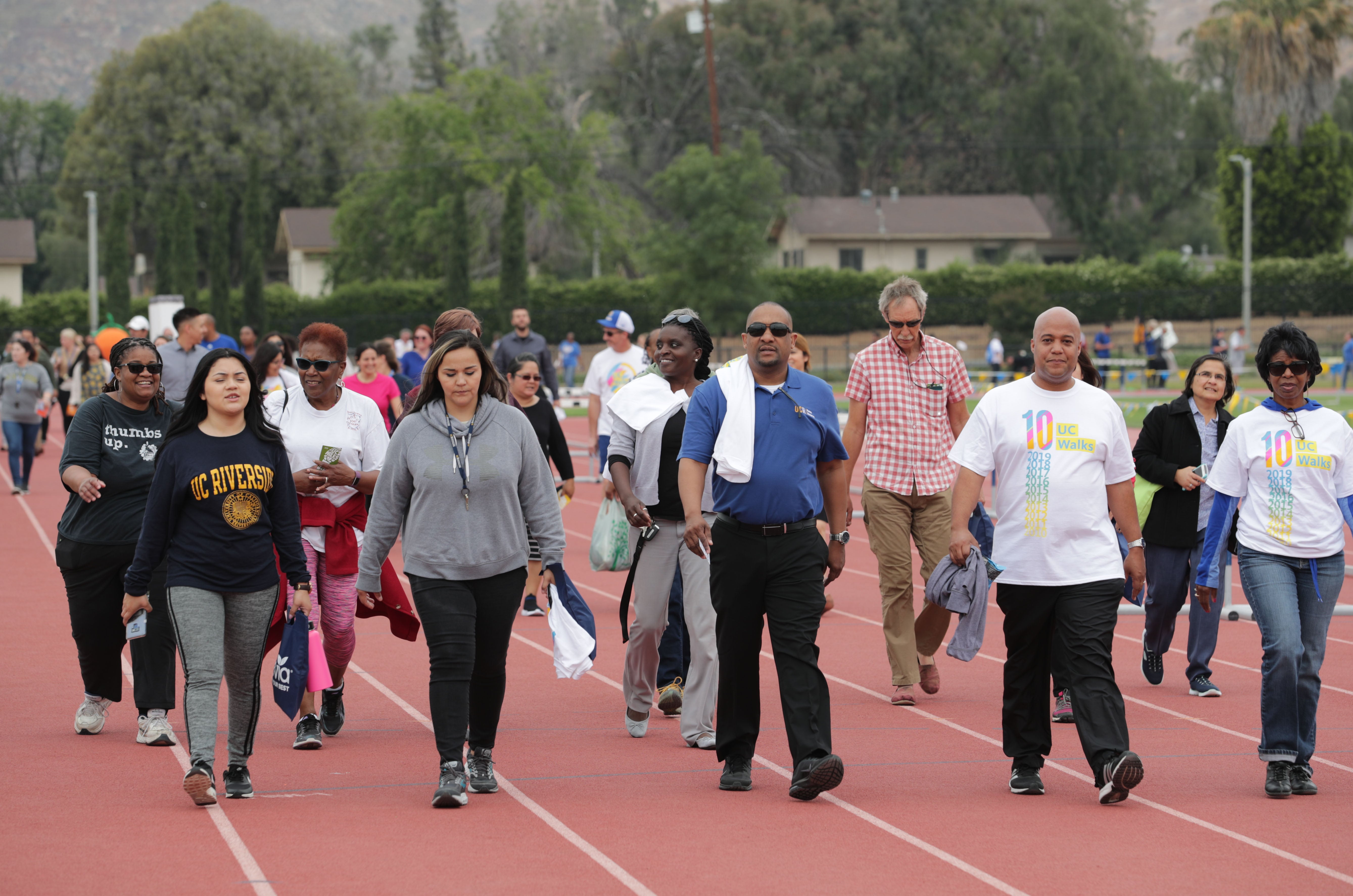 More than 400 UC Riverside staff, faculty, and students walked laps around the outdoor track Wednesday as part of the 10th Annual UC Walks.