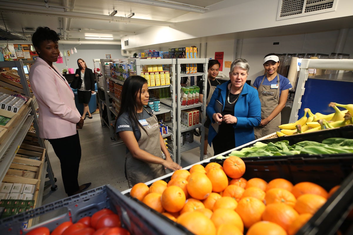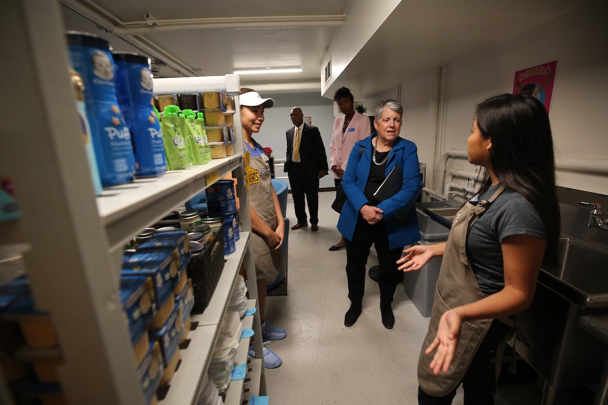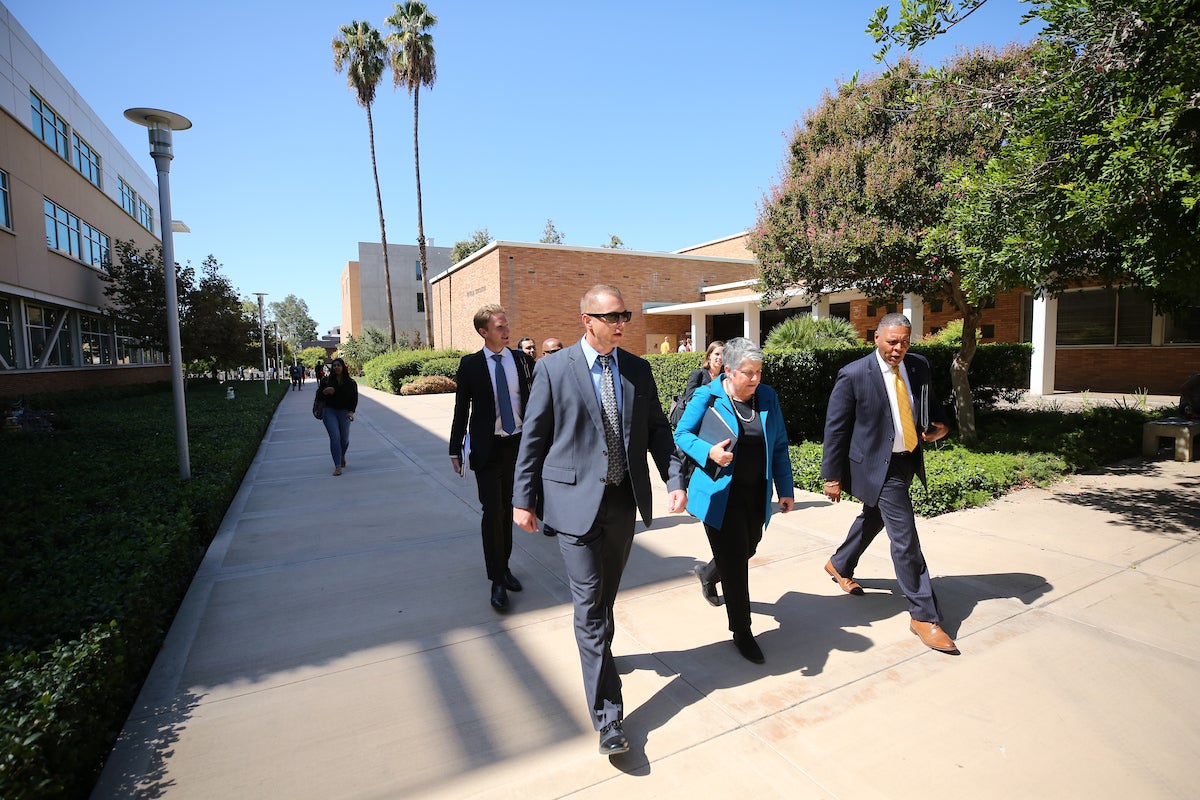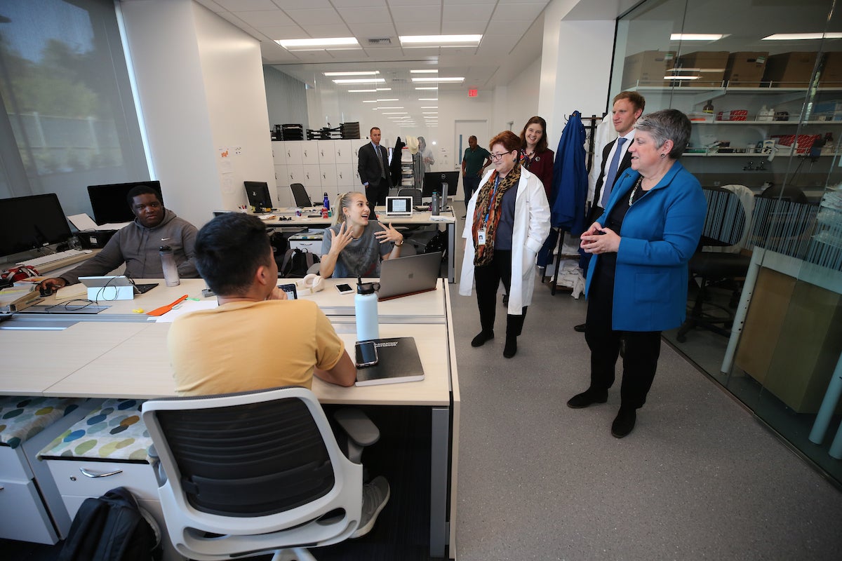 UC President Janet Napolitano helped usher in a new student housing project, toured several buildings, and met with students, staff, and faculty members during an Oct. 4 visit to UC Riverside.