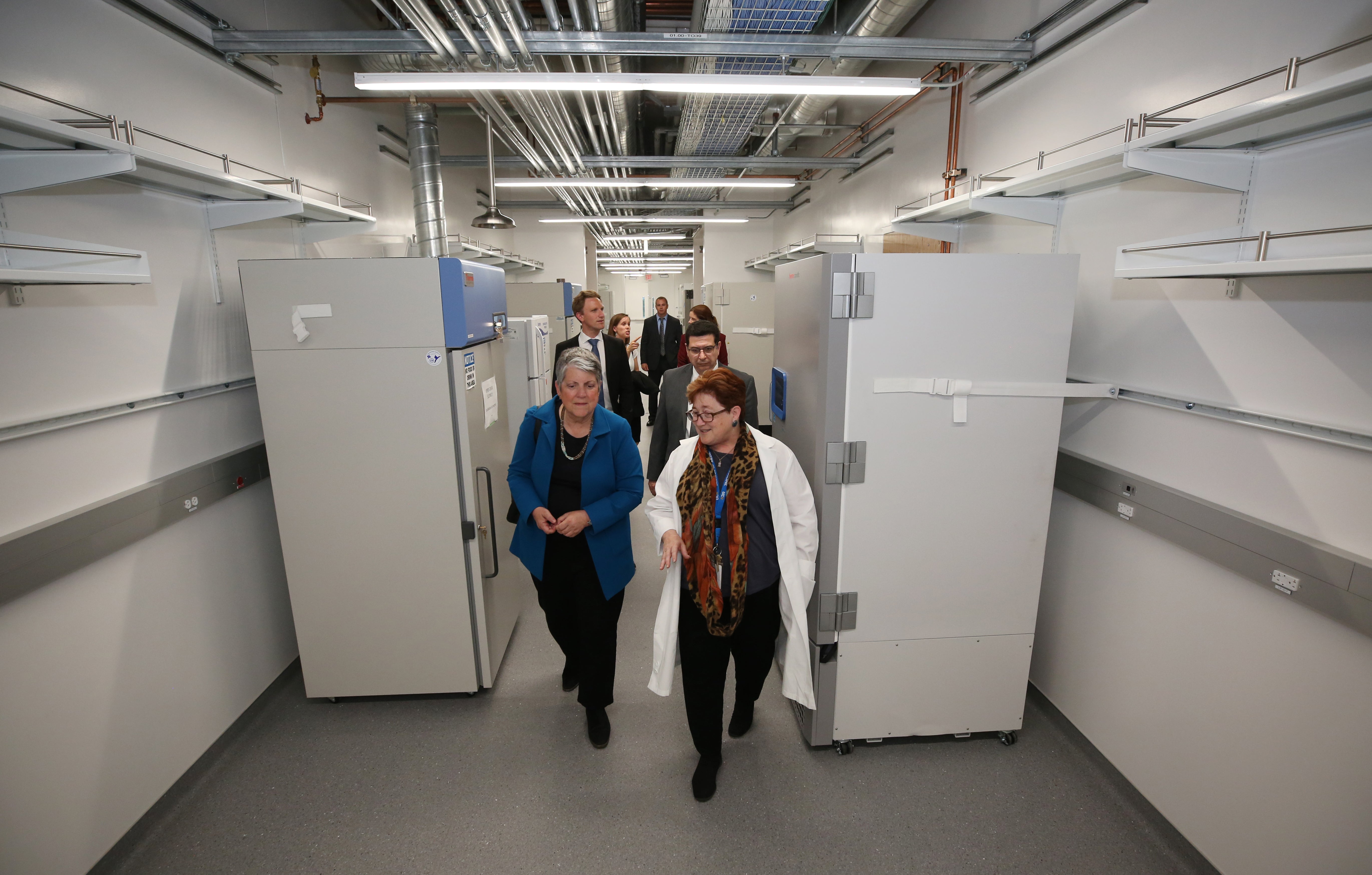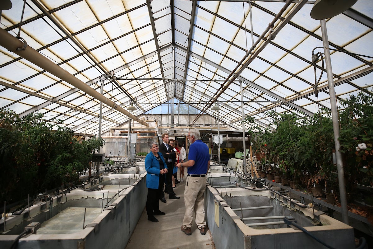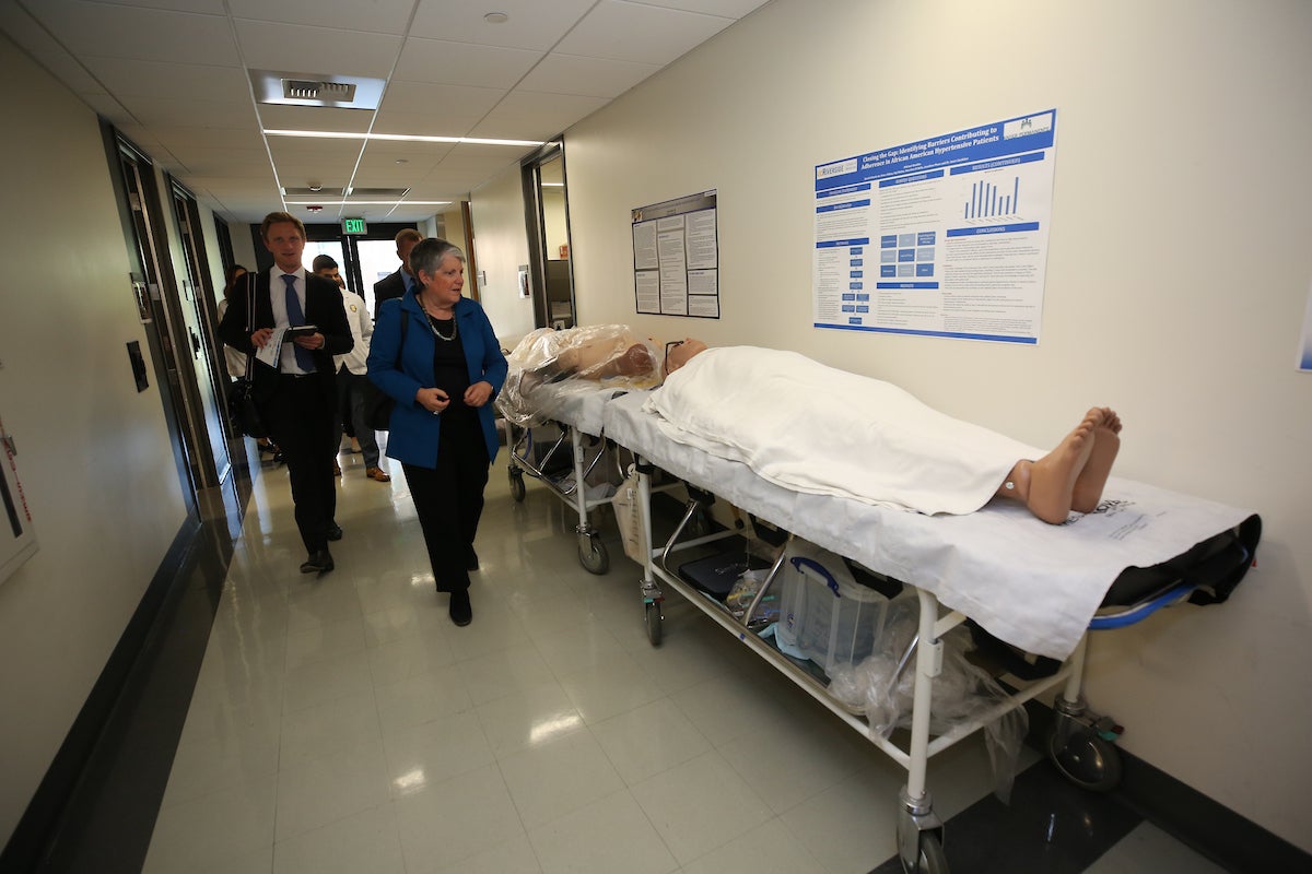 Her packed schedule included classroom visits, a tour of campus facilities such as the School of Medicine and Multidisciplinary Research Building, a roundtable luncheon with student leaders, and meetings with Chancellor Kim A. Wilcox and other campus administrators.