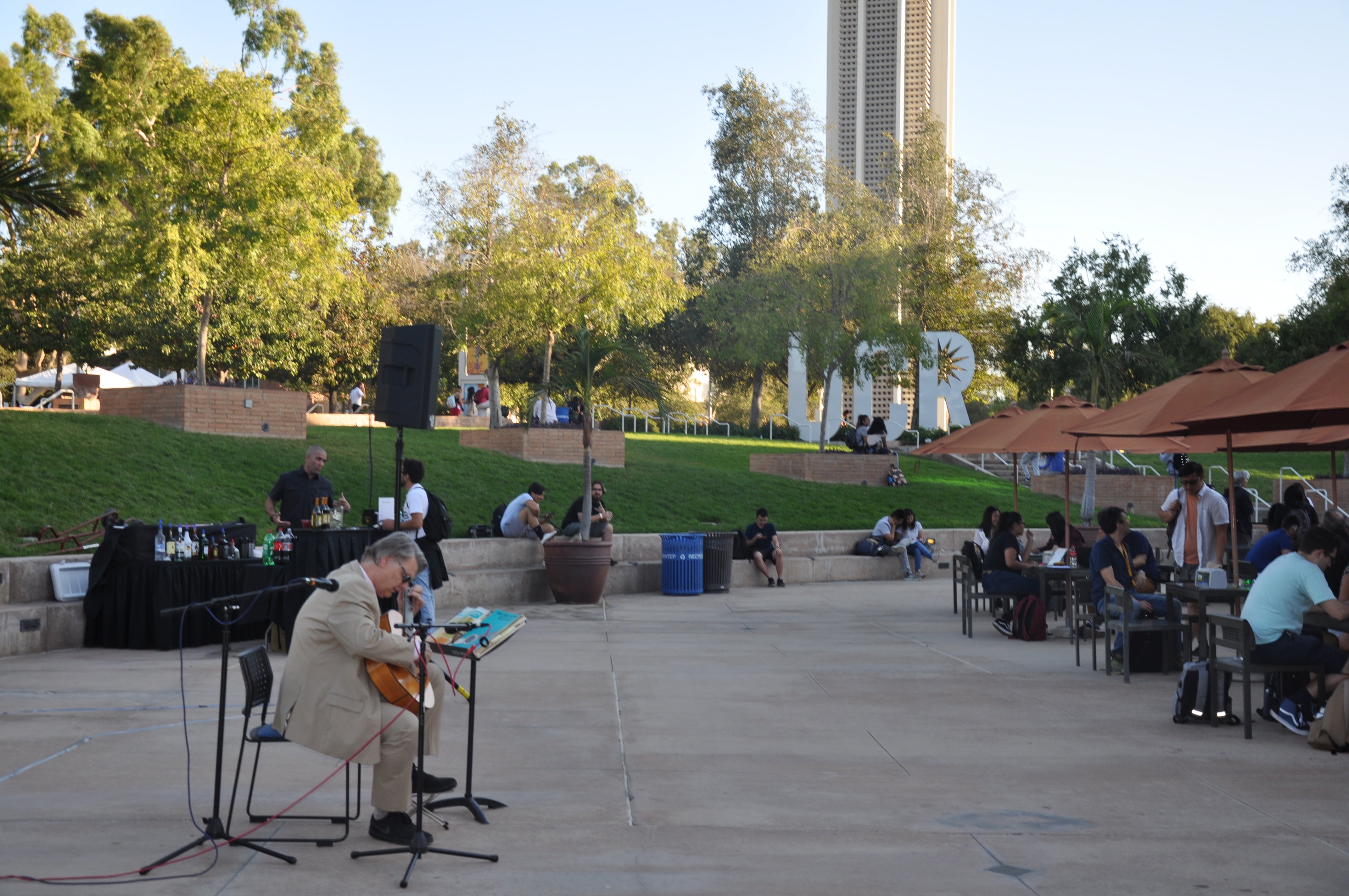 Thursday Nights Live offers UC Riverside staff and faculty members an opportunity to unwind with cocktails and music after work in the center lower court area of the HUB plaza.
